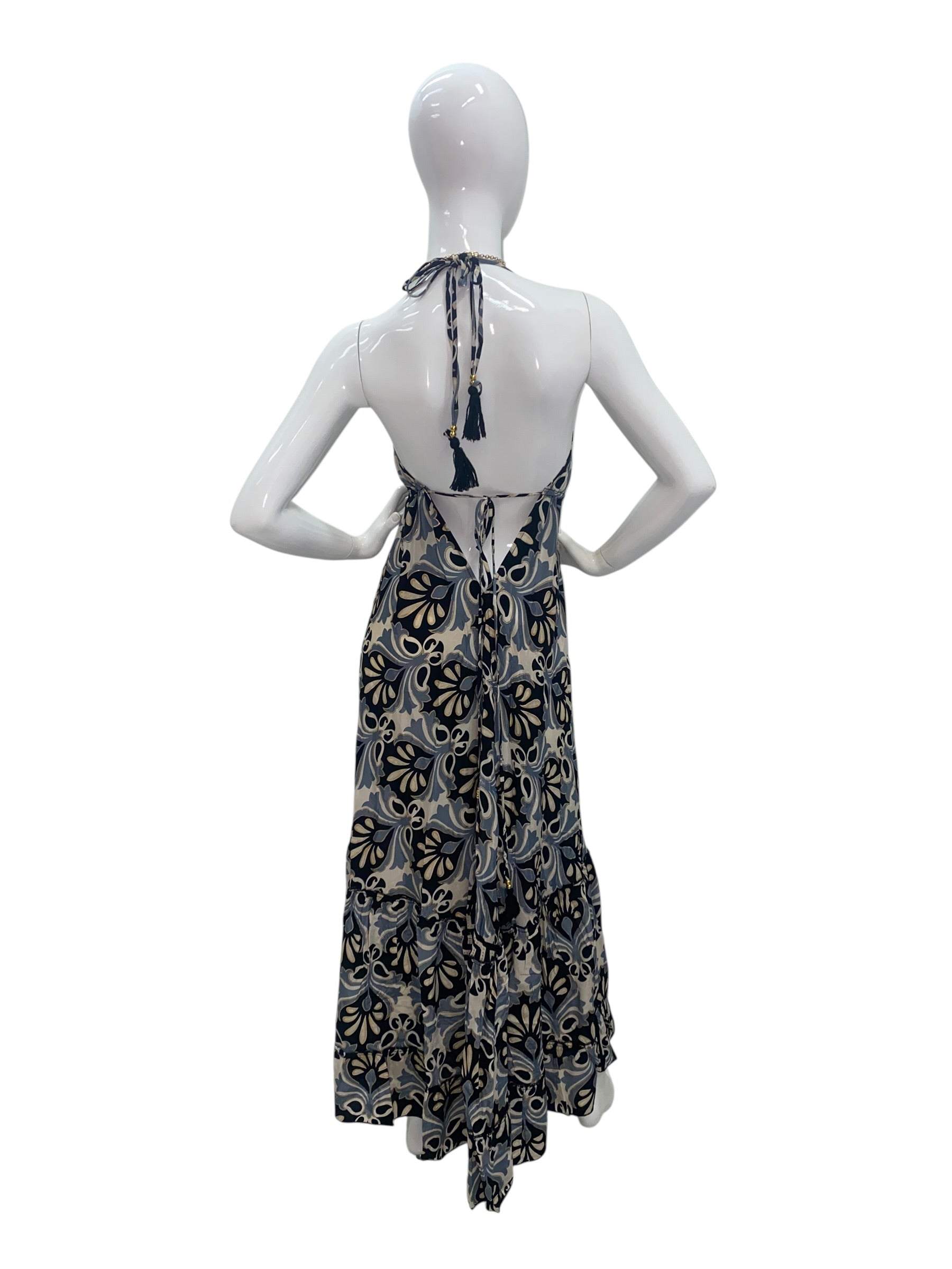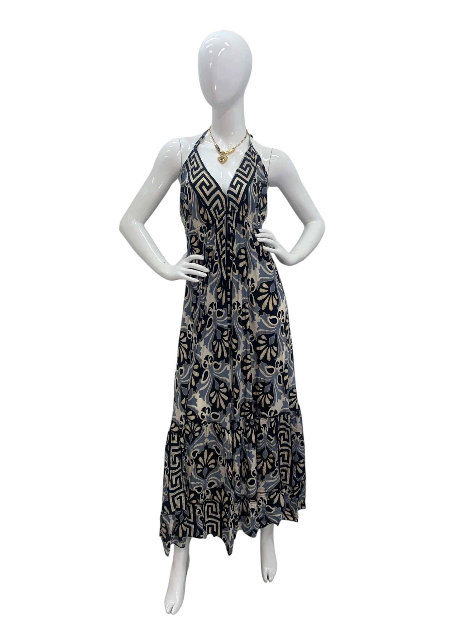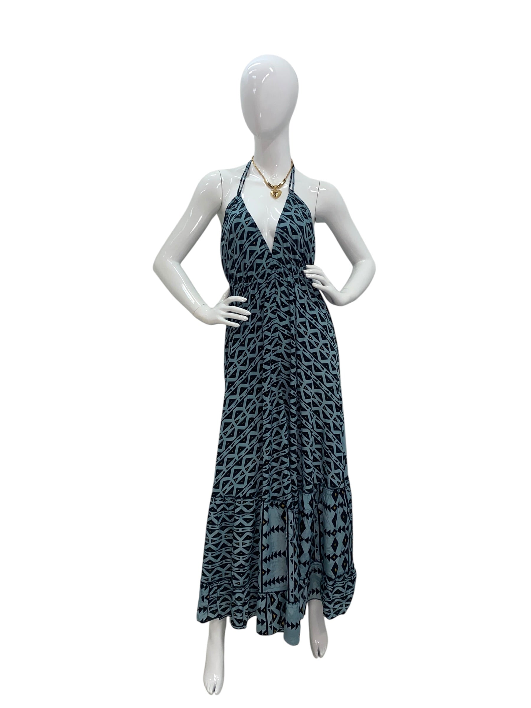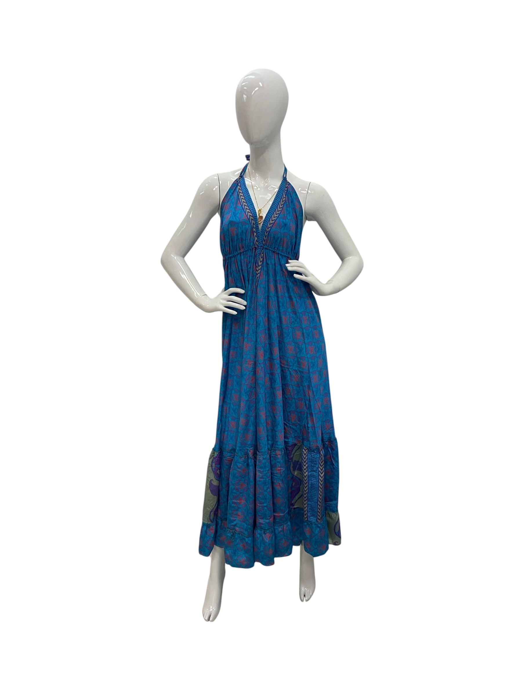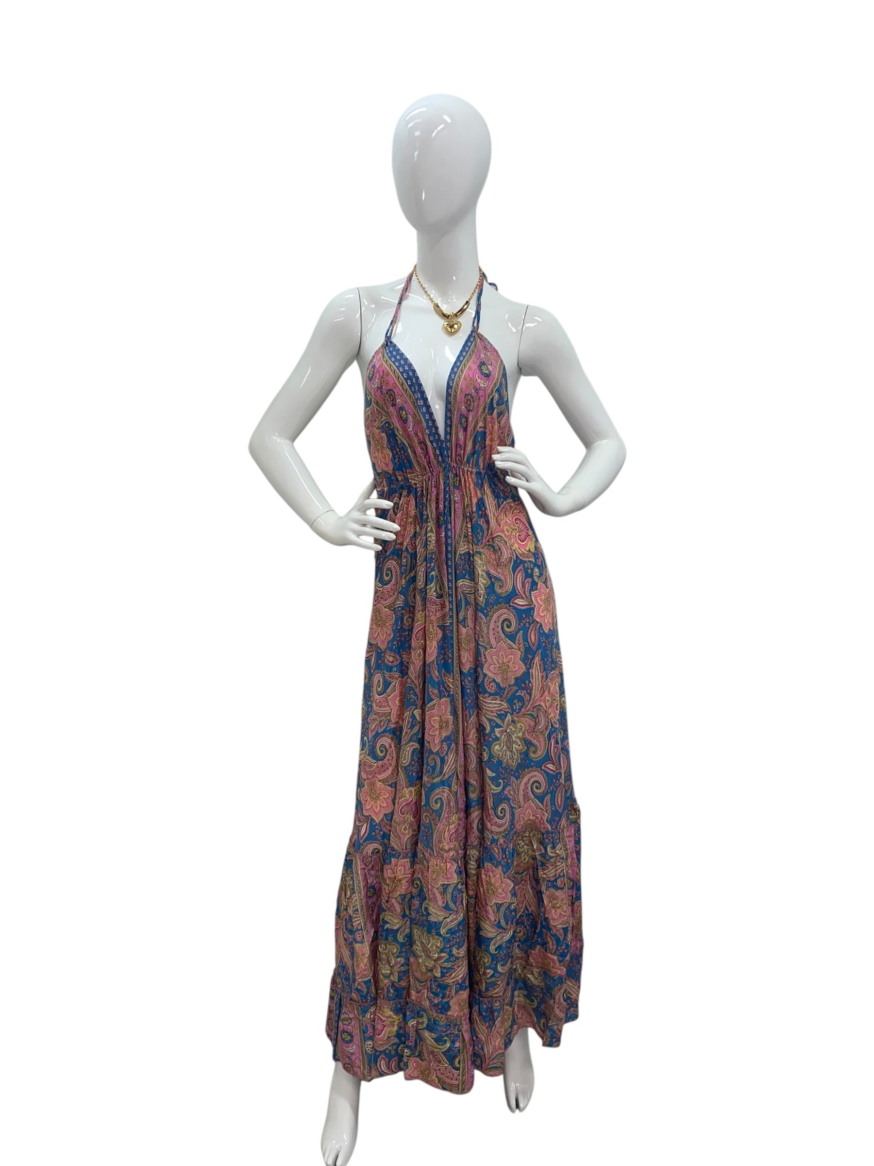 Cleo Rustic Blue and Pink Pattern Long Dress