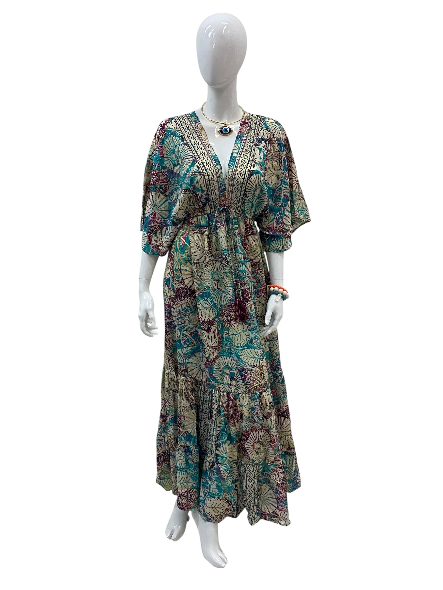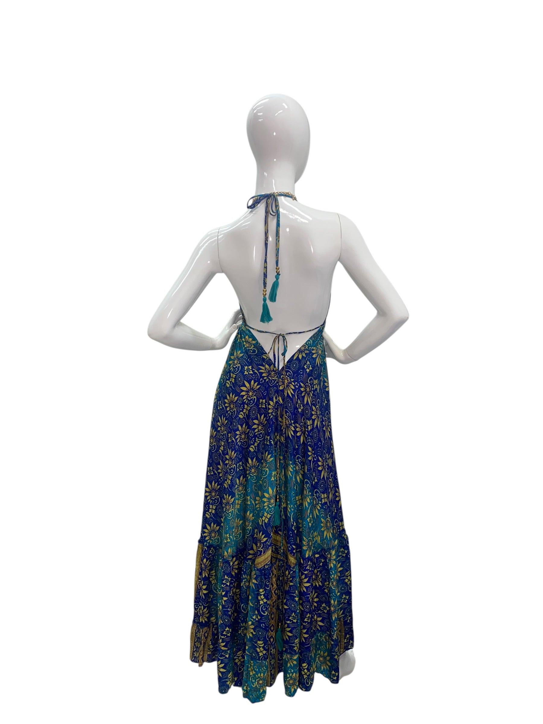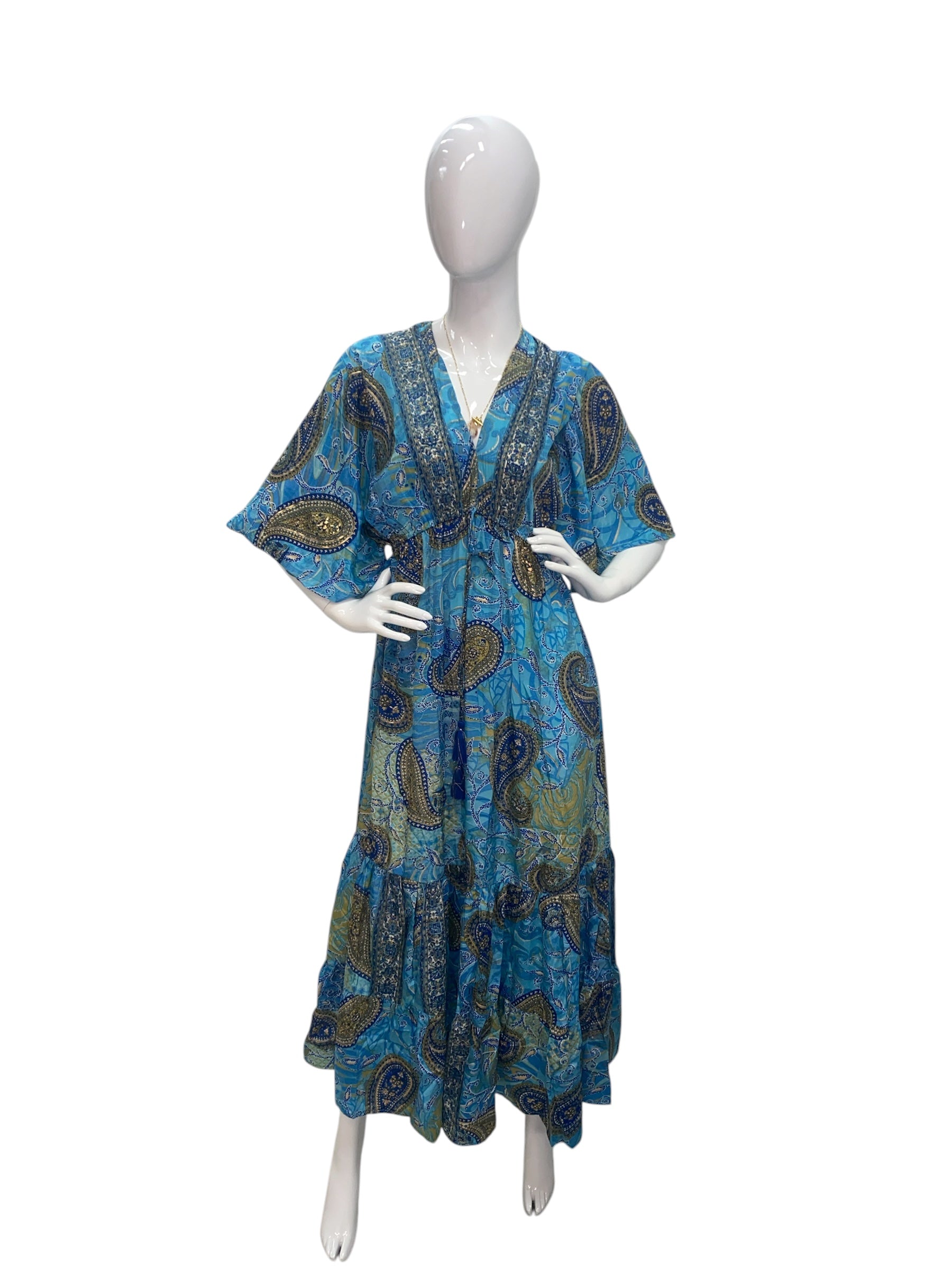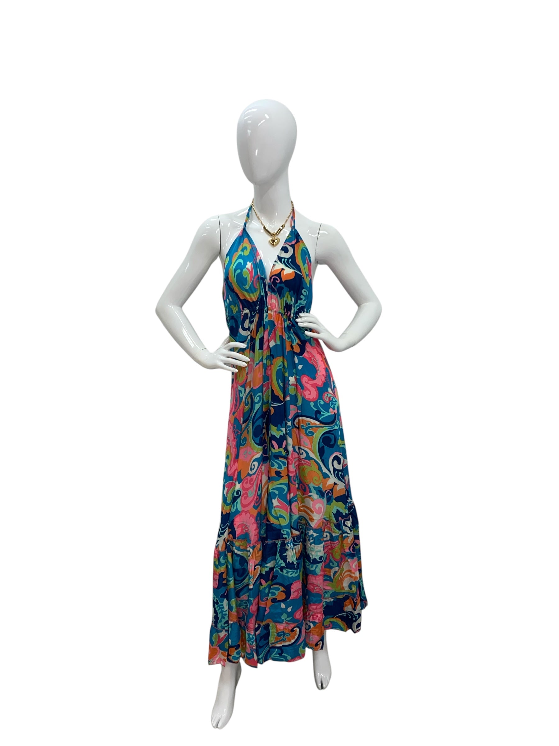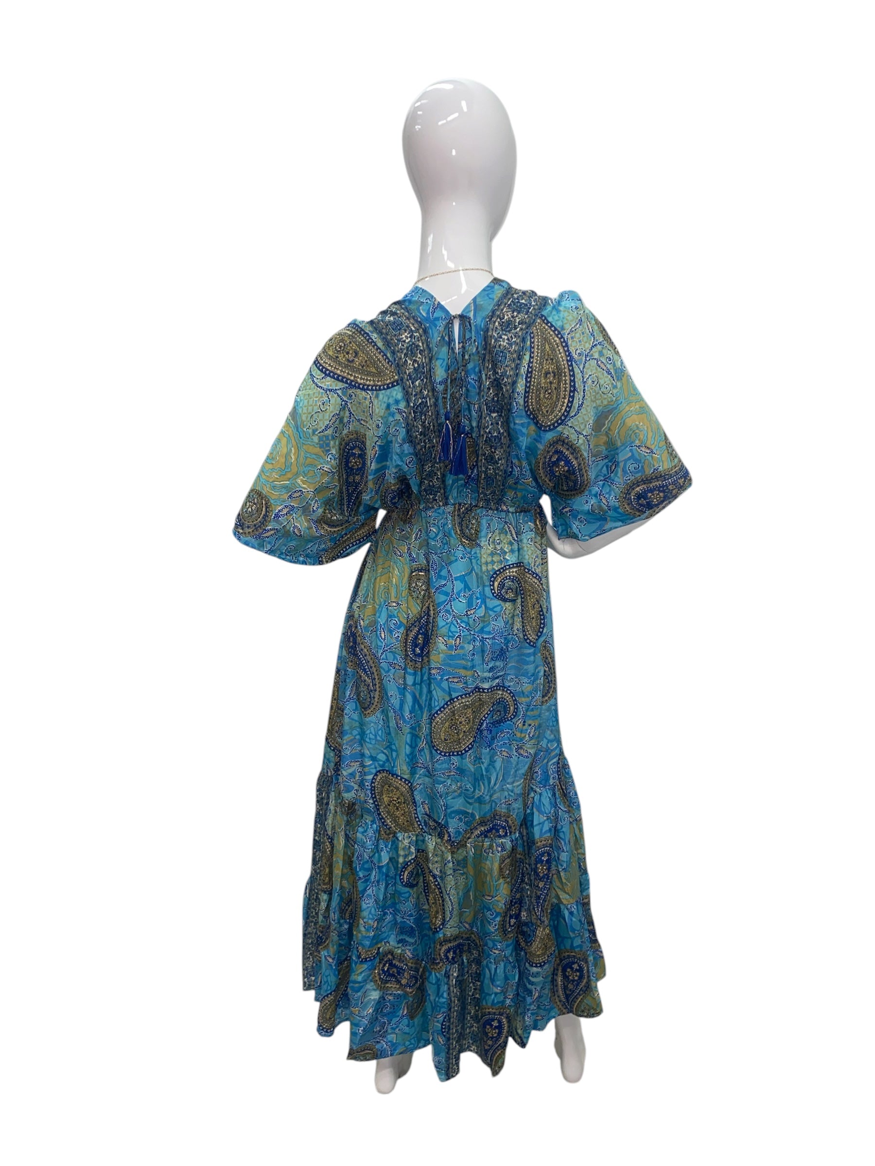 Cleo Rustic Blue and Pink Pattern Long Dress