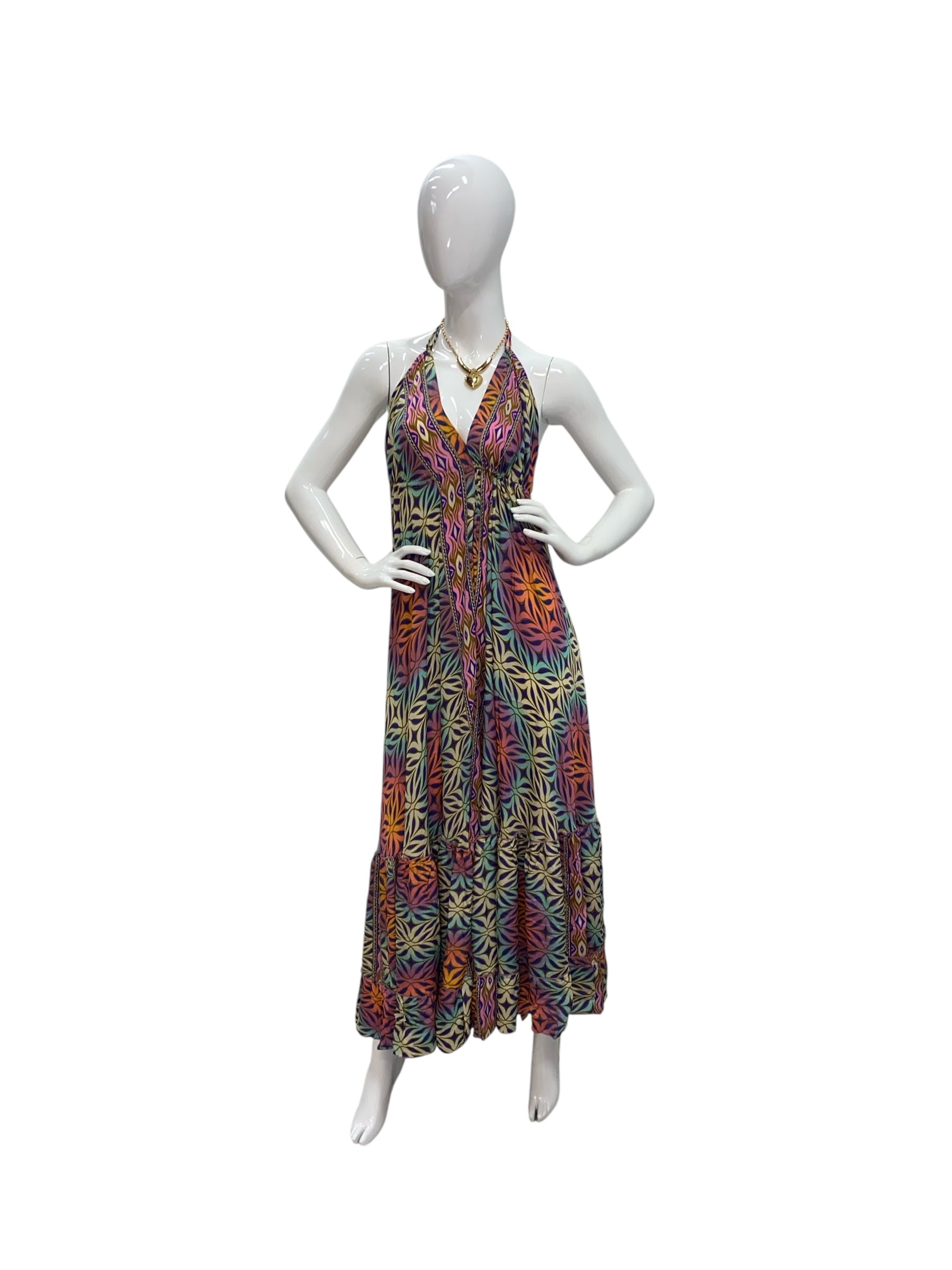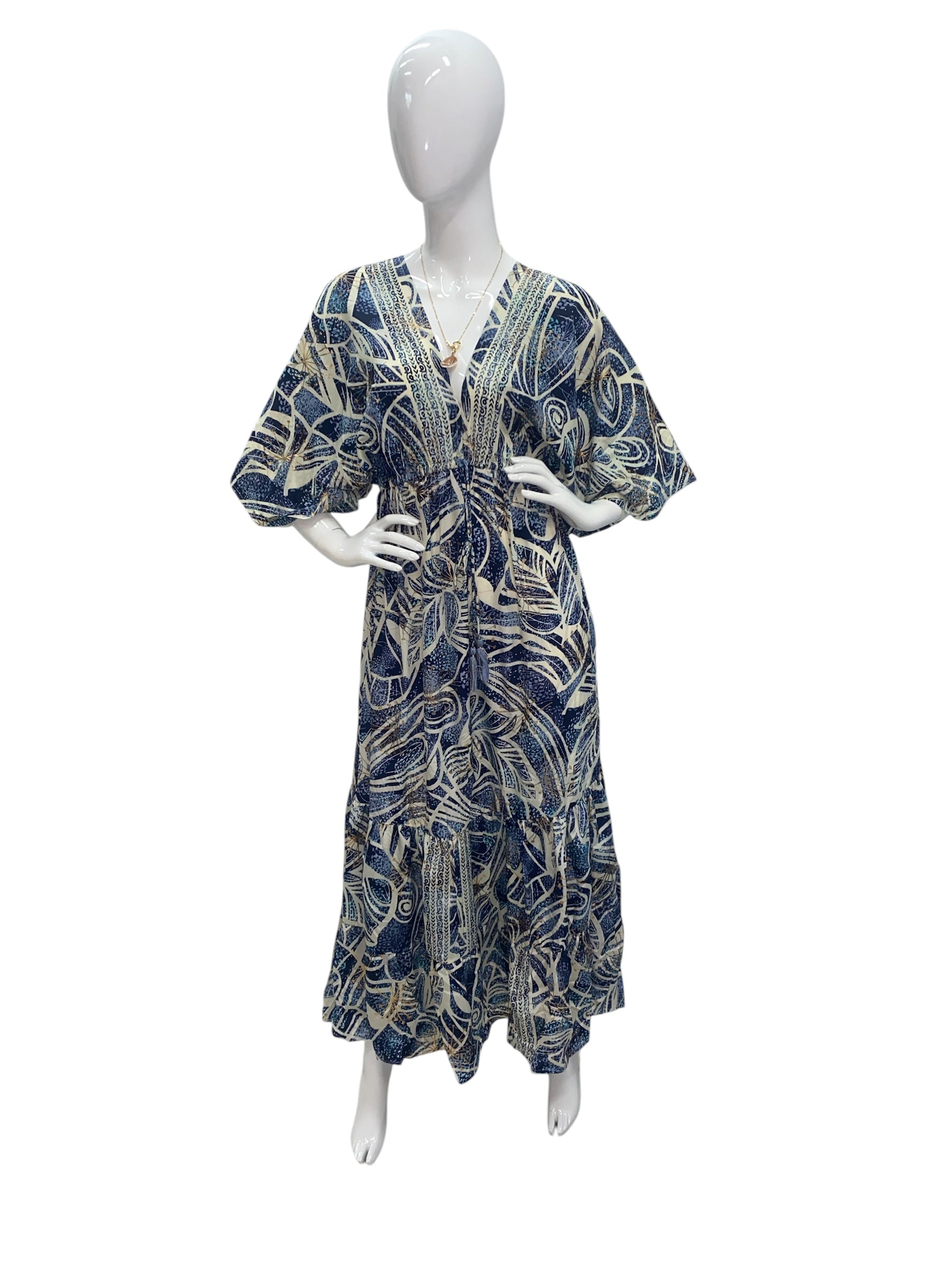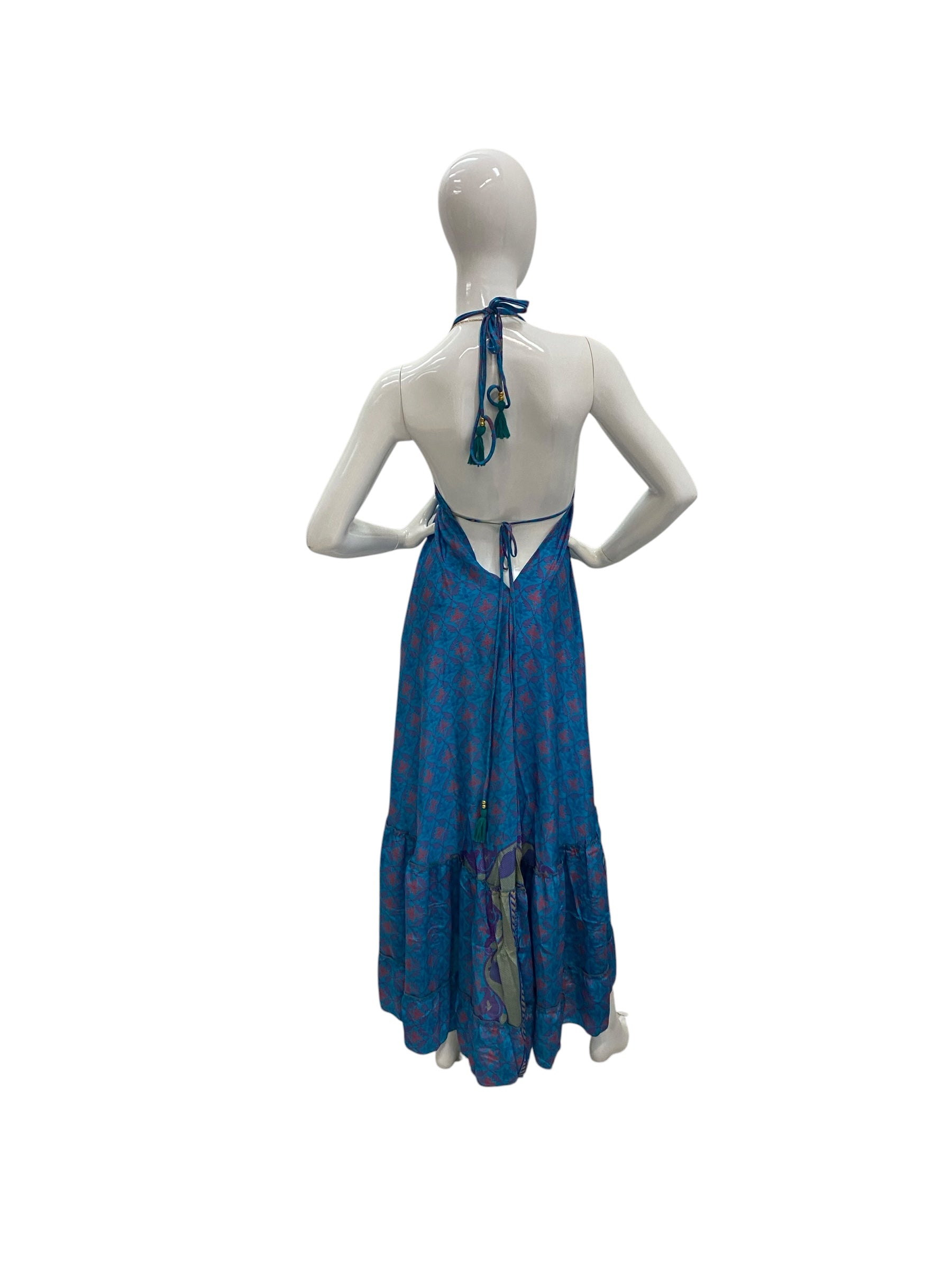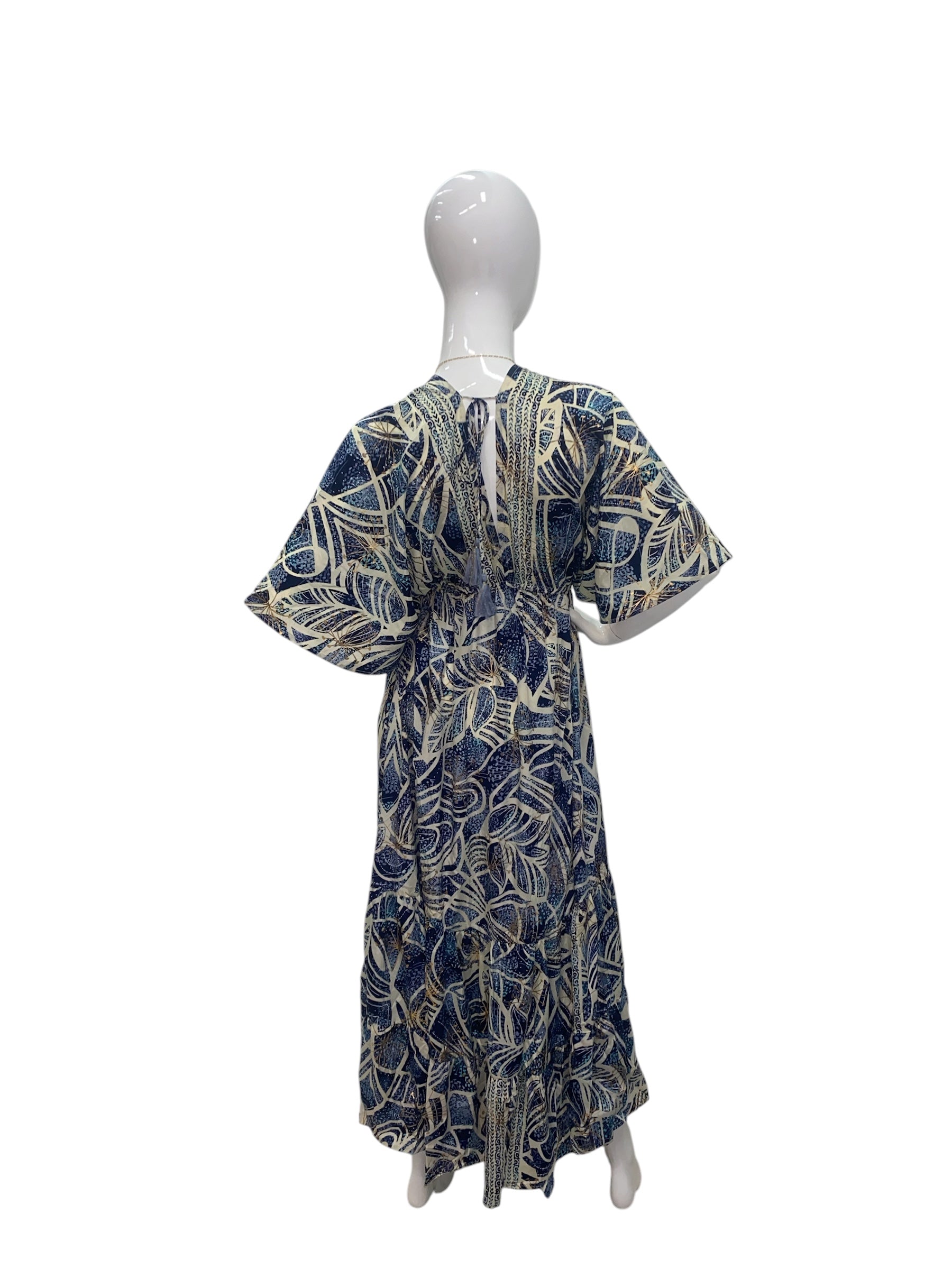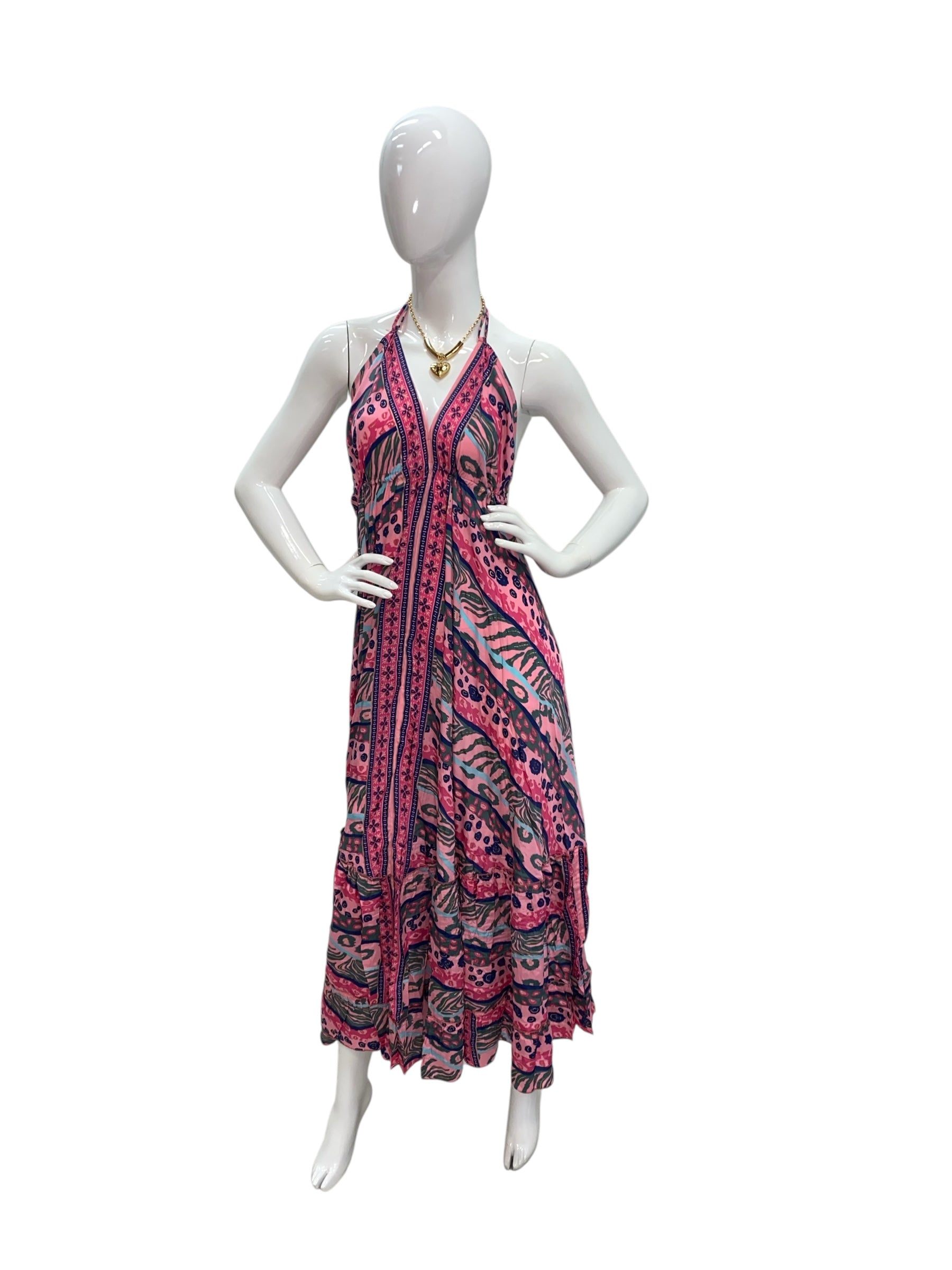 Cleo Rustic Blue and Pink Pattern Long Dress