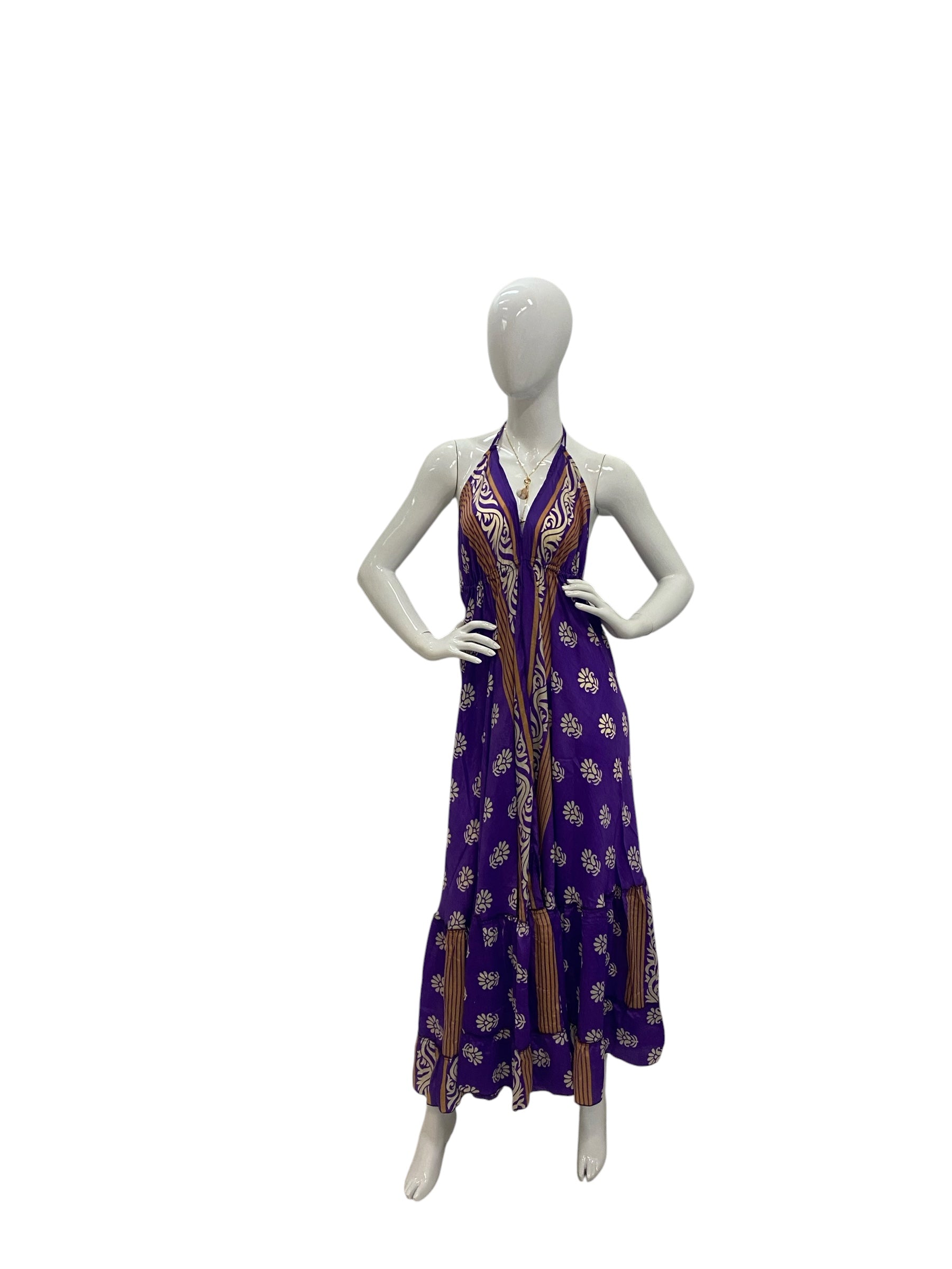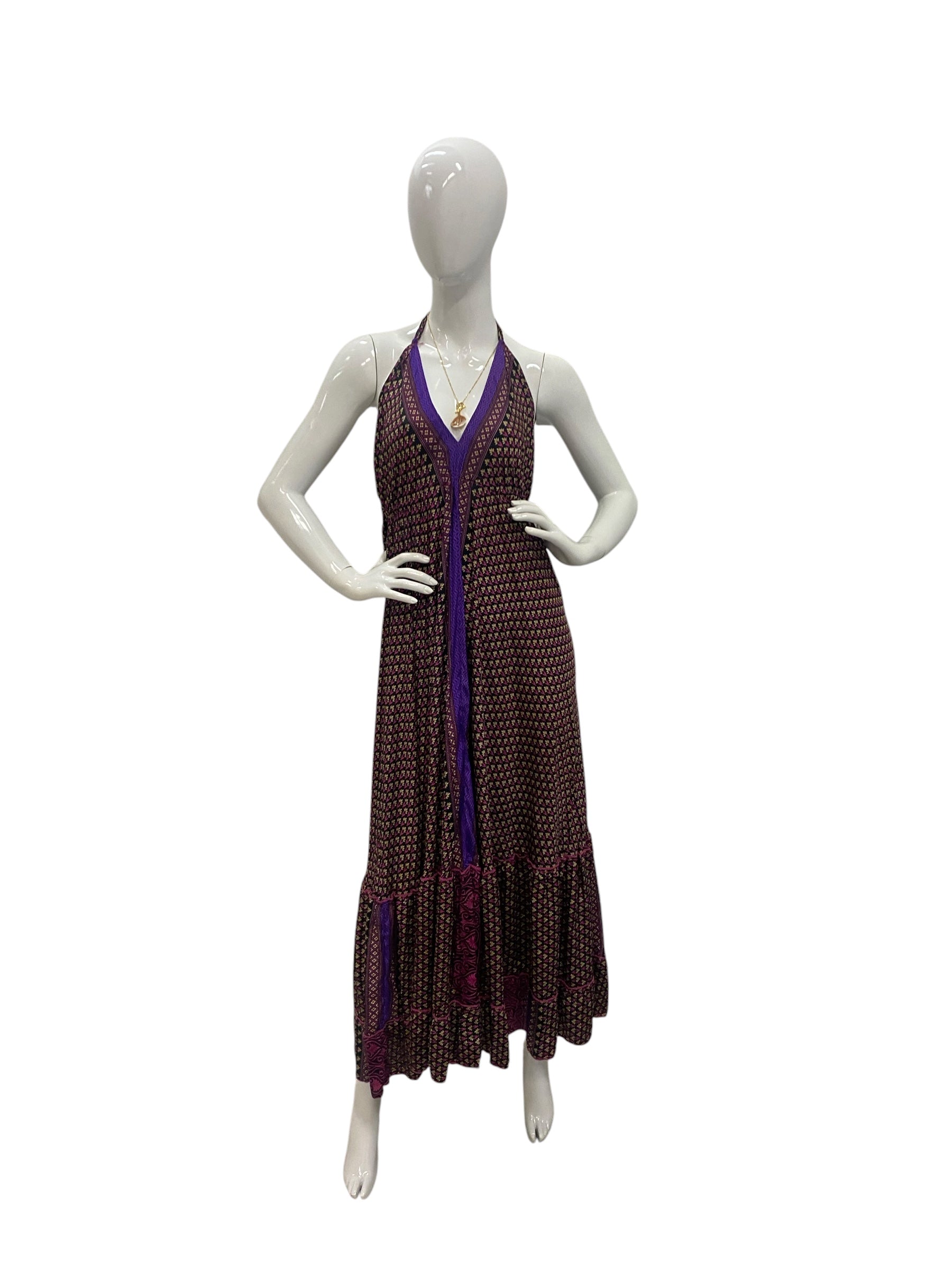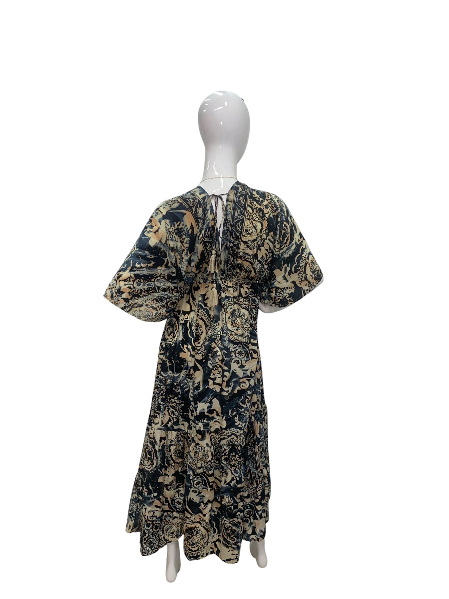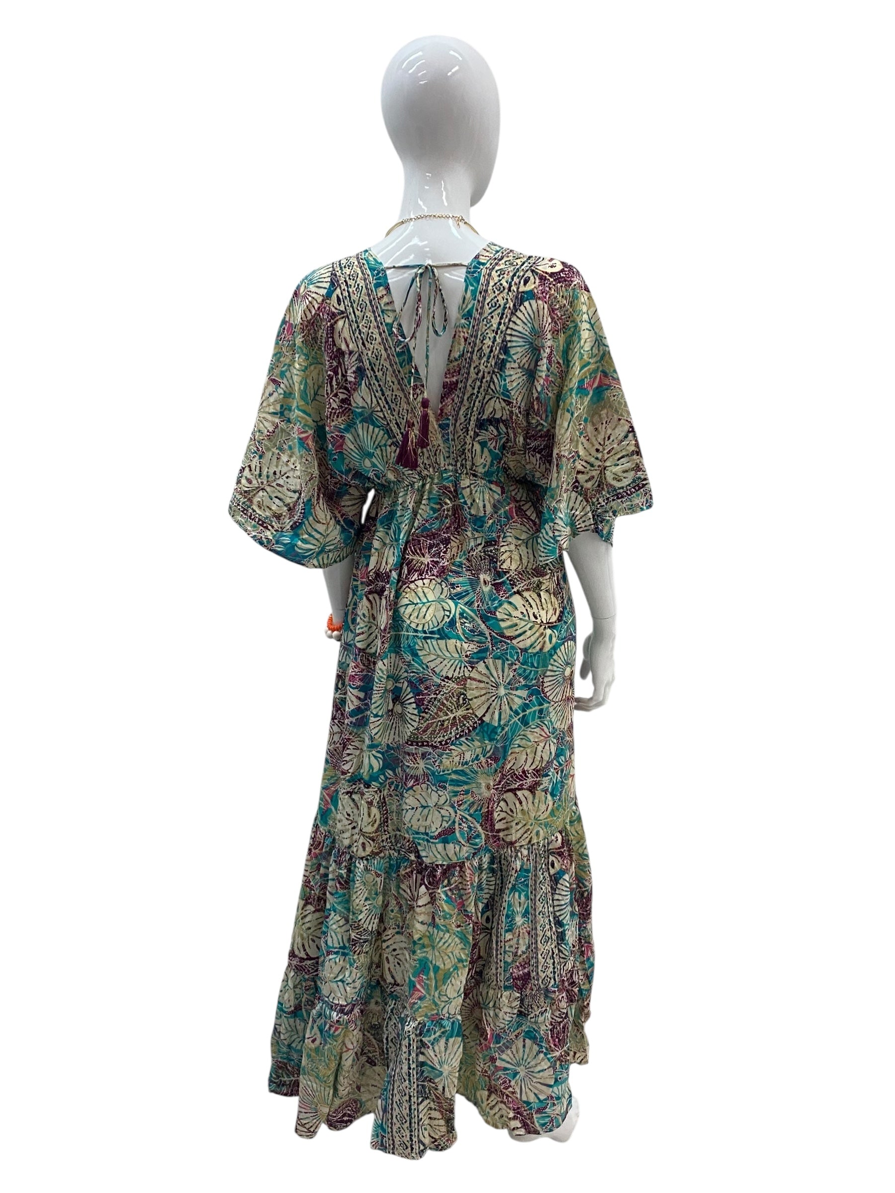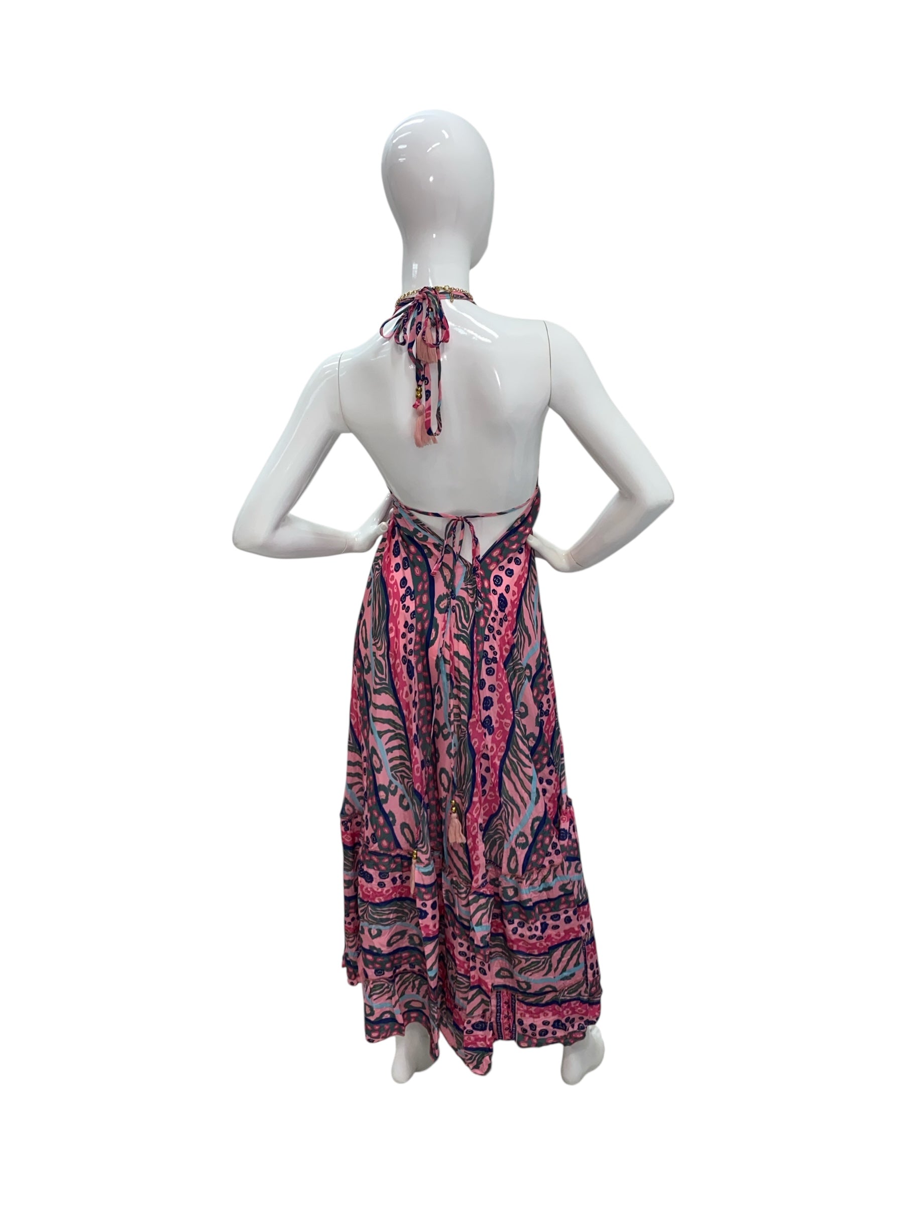 Cleo Rustic Blue and Pink Pattern Long Dress
