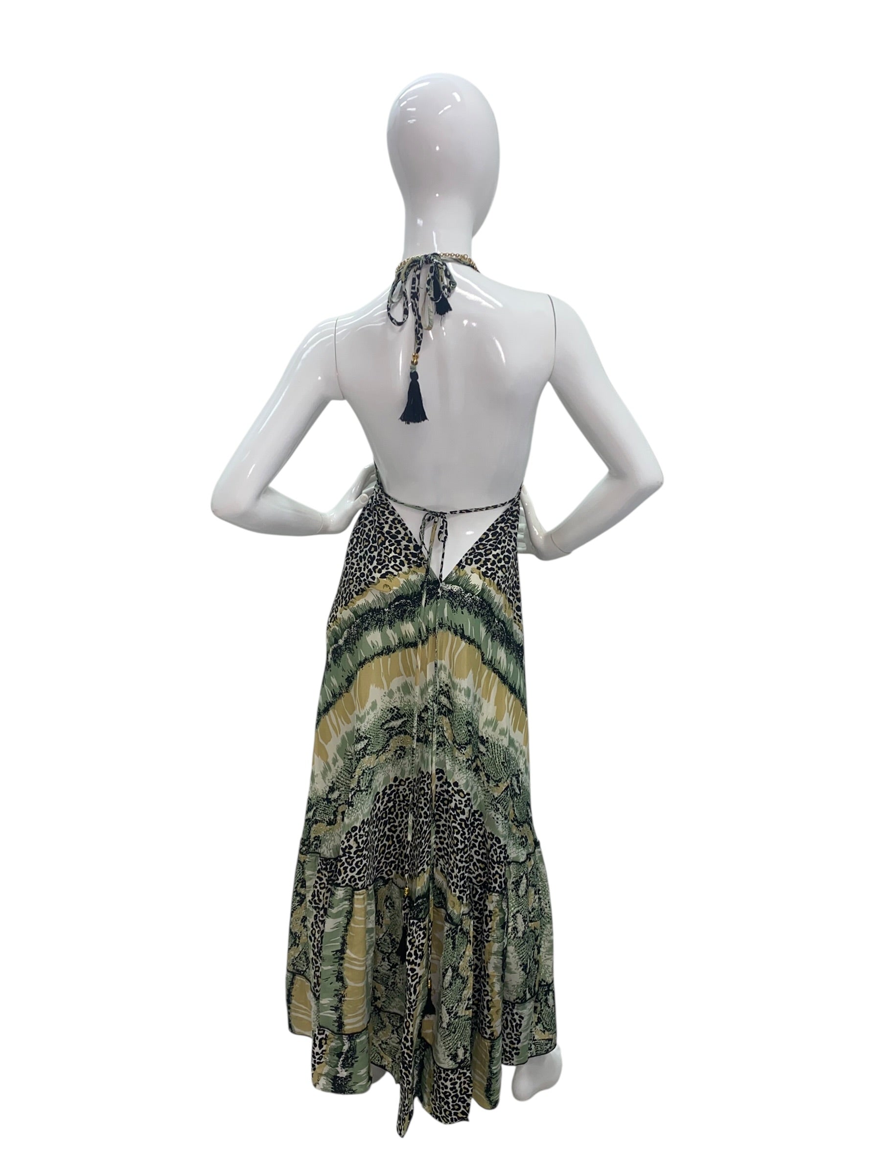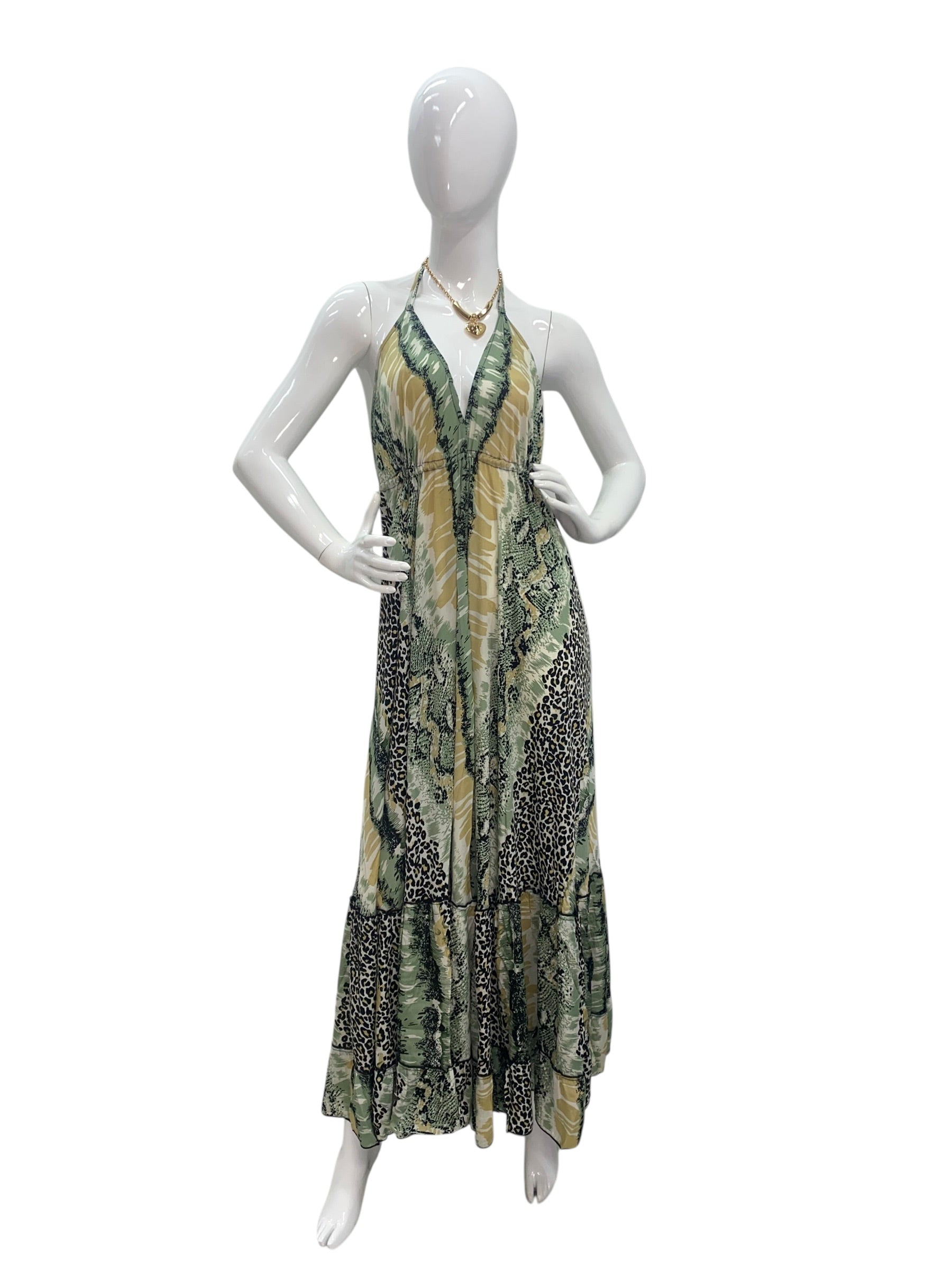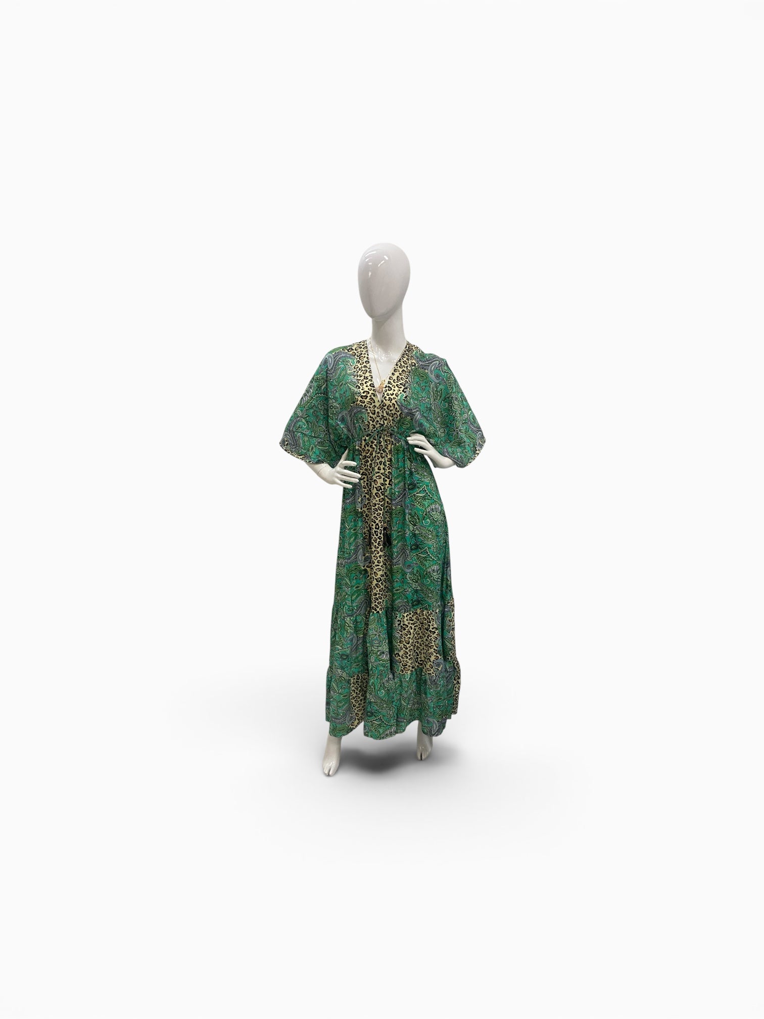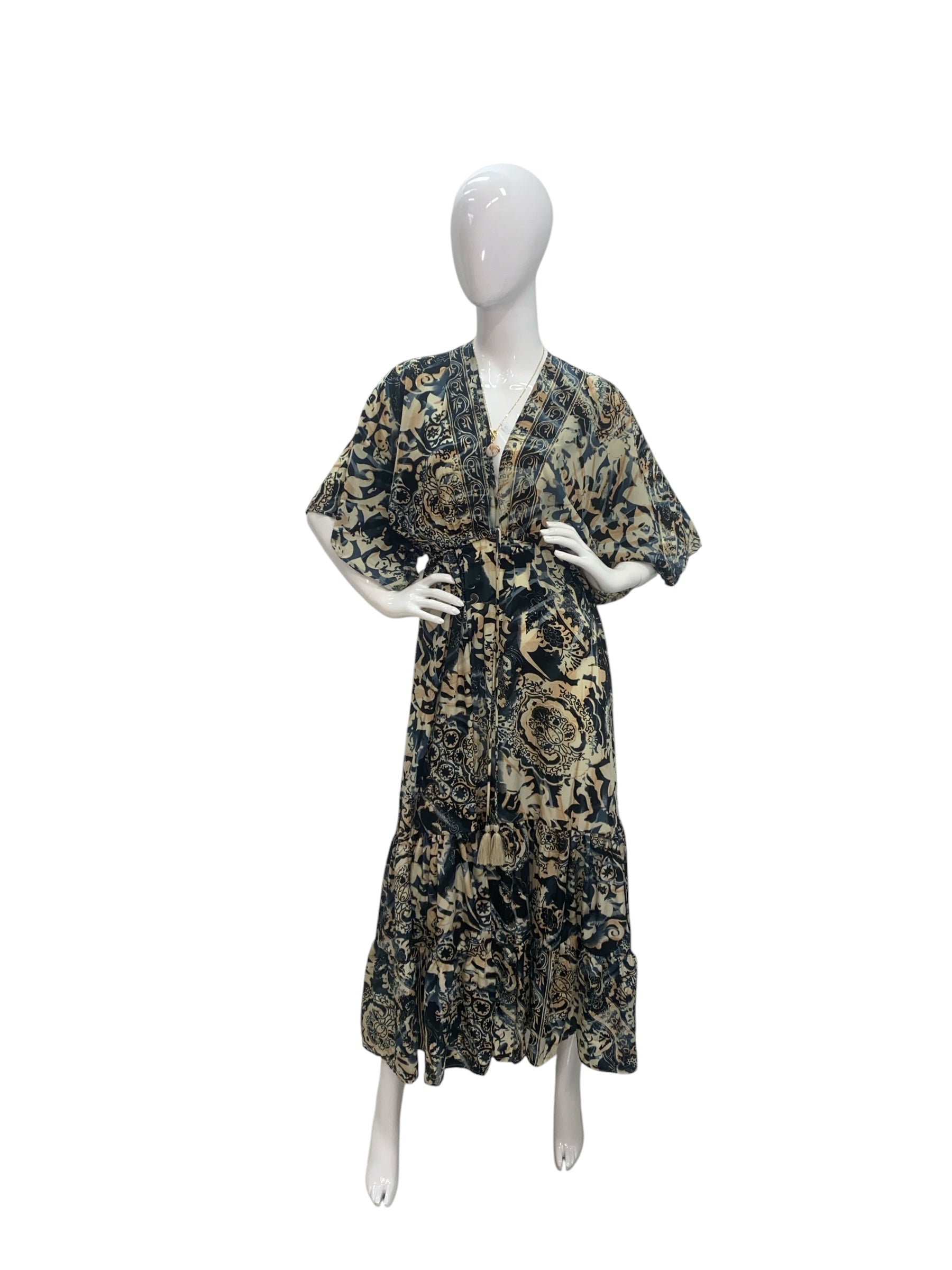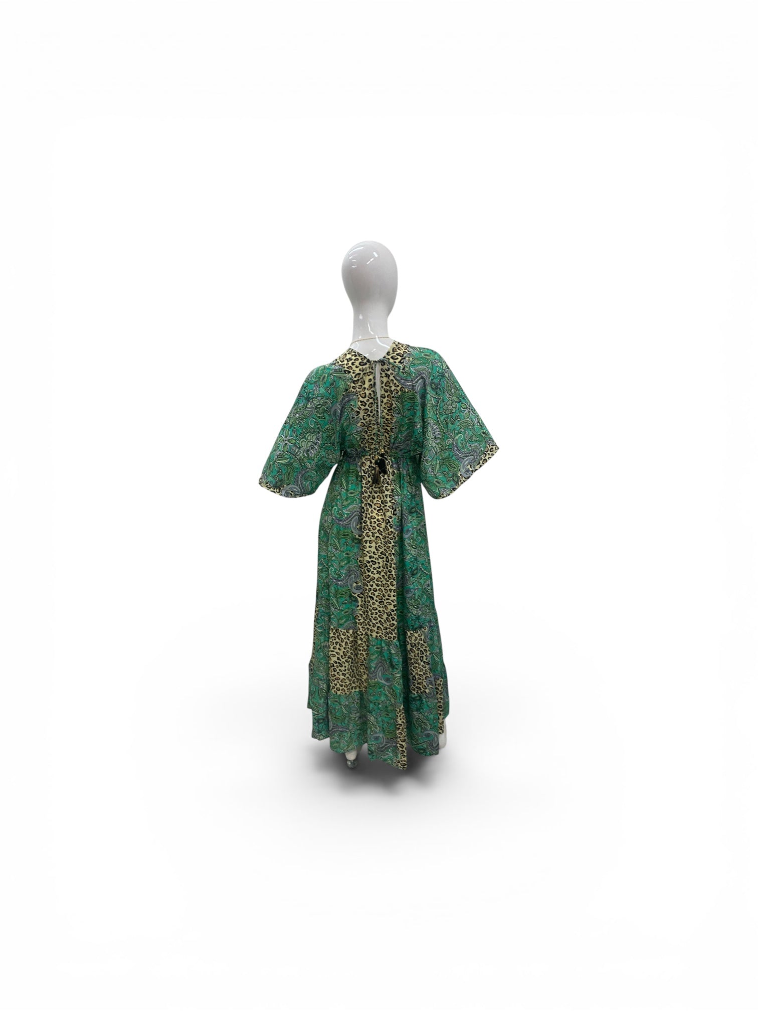 Cleo Rustic Blue and Pink Pattern Long Dress