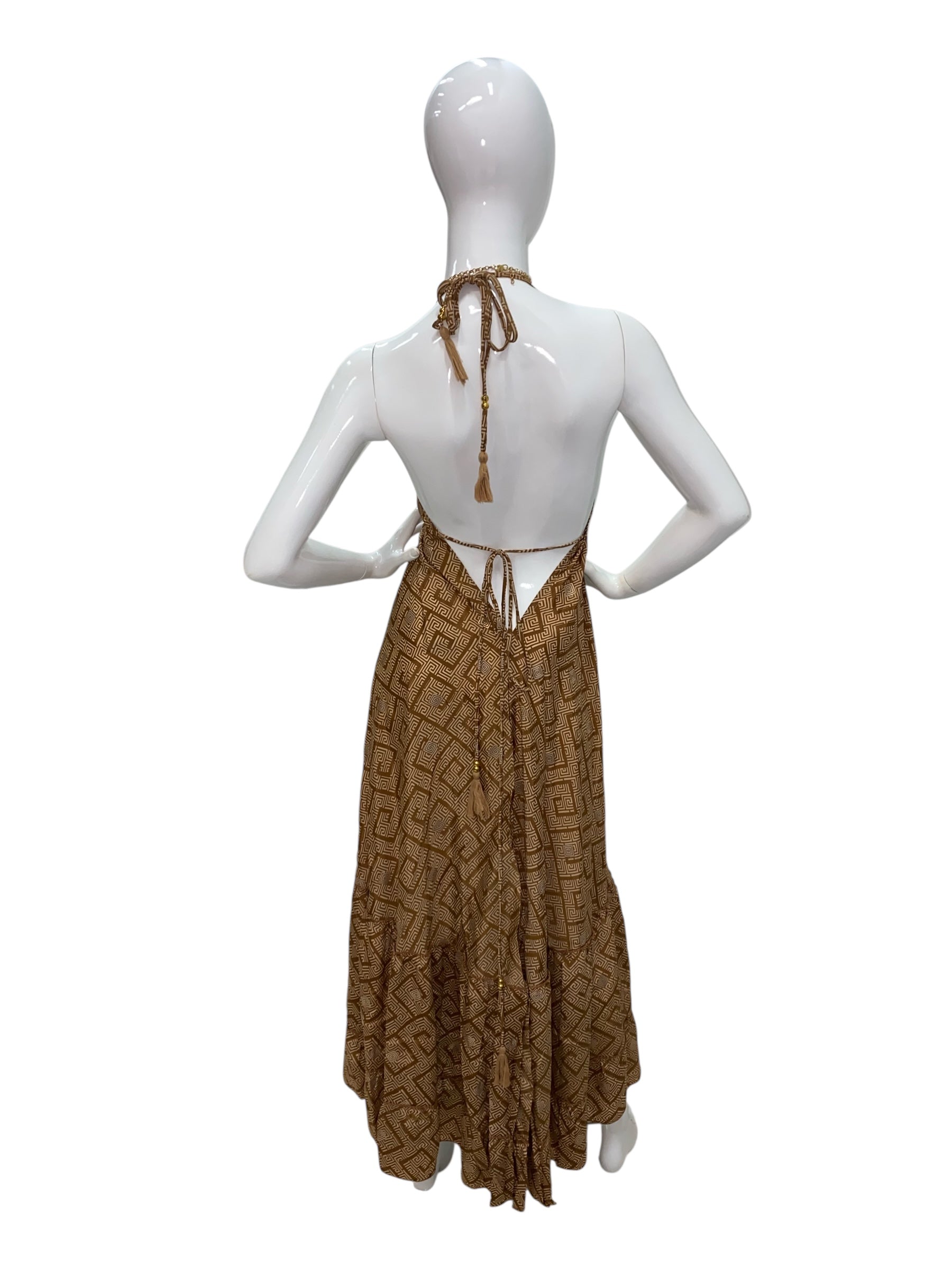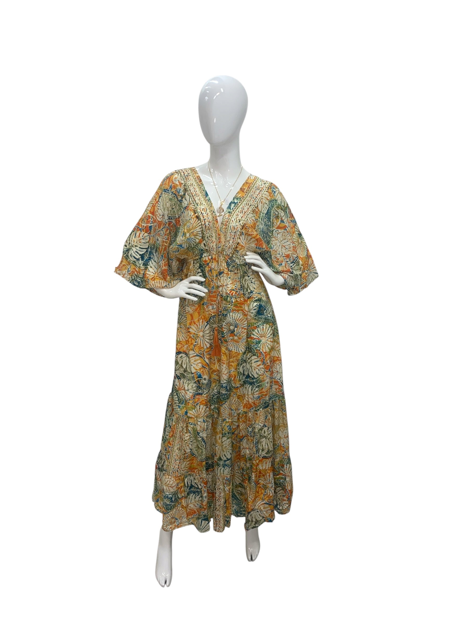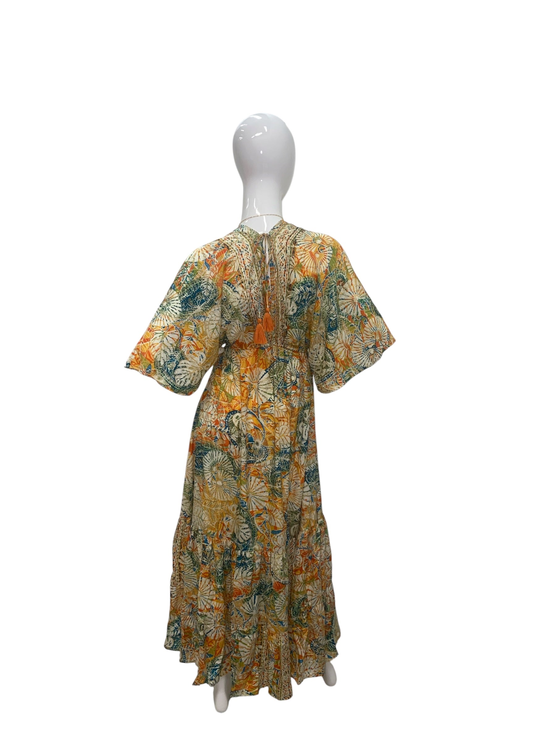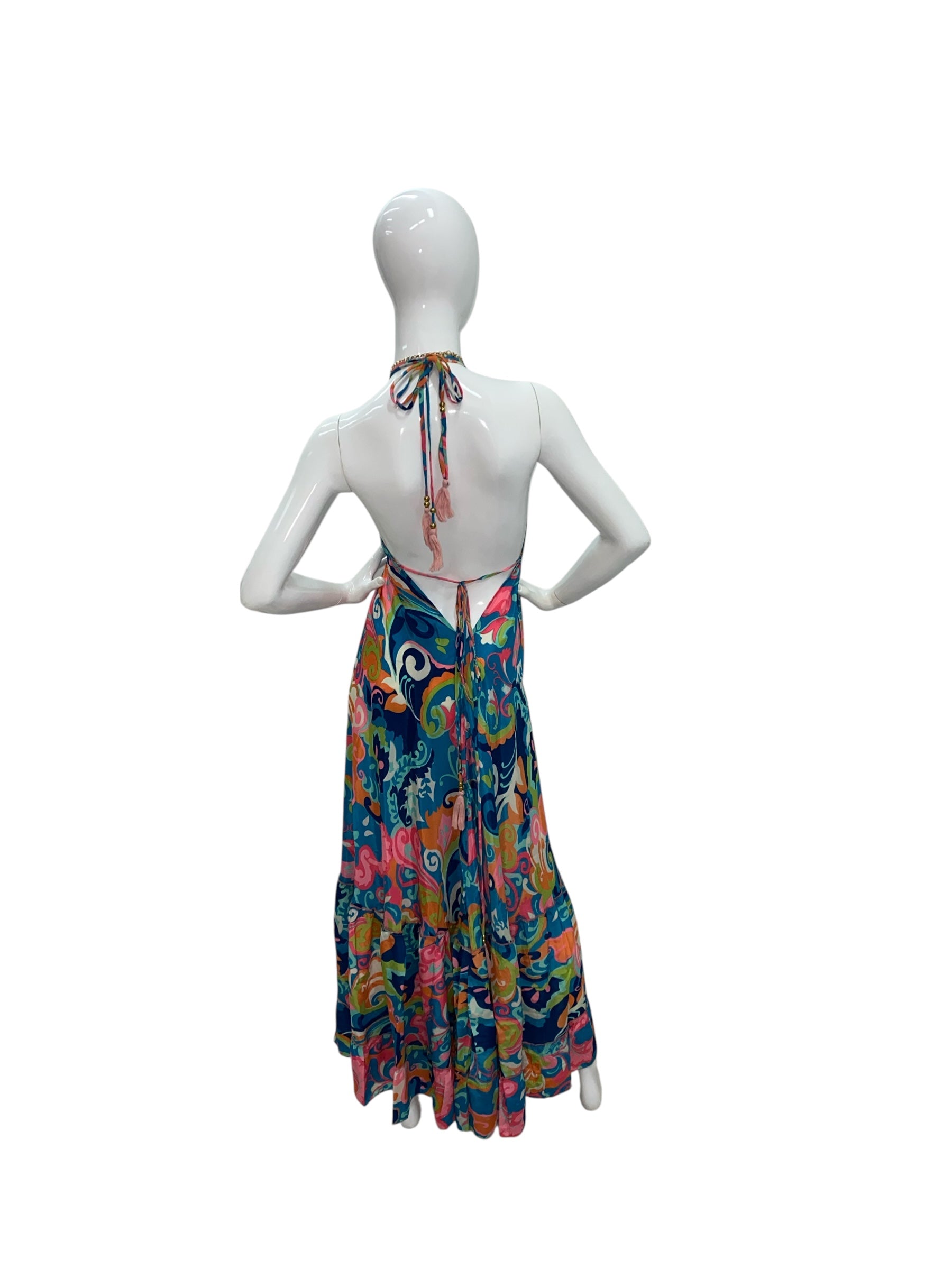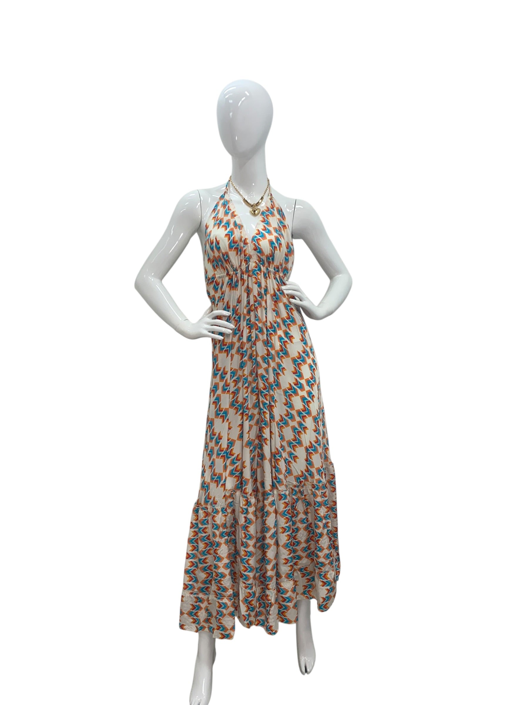 Cleo Pastel Orange and Blue Pattern Long Dress