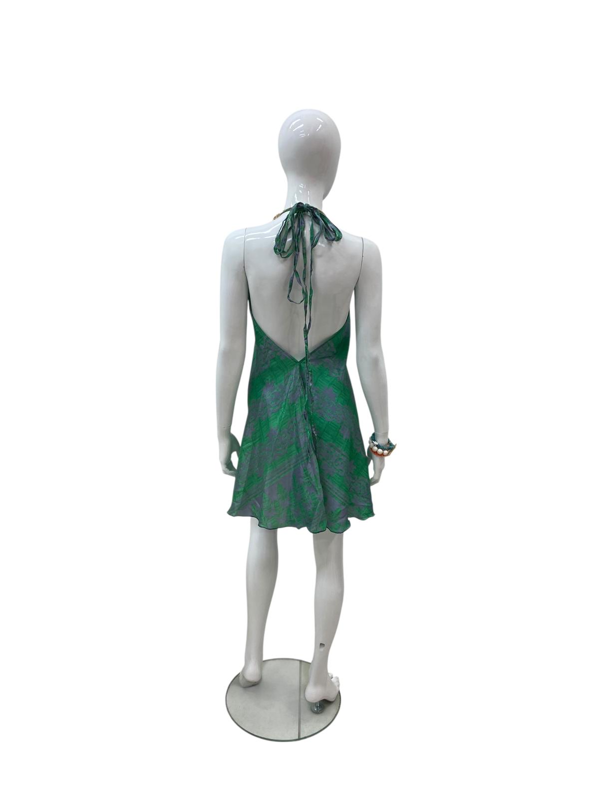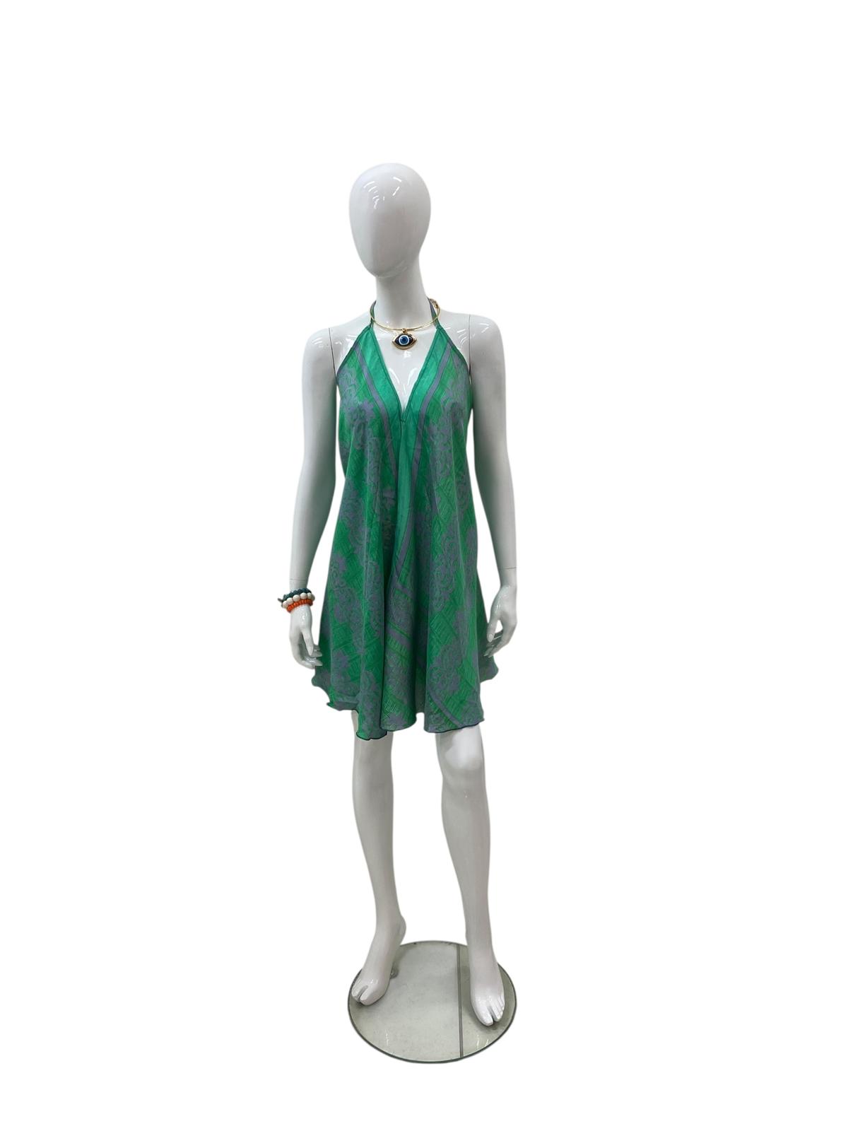 This short green halter dress has a breezy, tropical vibe with its light fabric and flattering A-line shape. The subtle pattern and flowy fit make it an easy, comfortable option for warm-weather adventures.