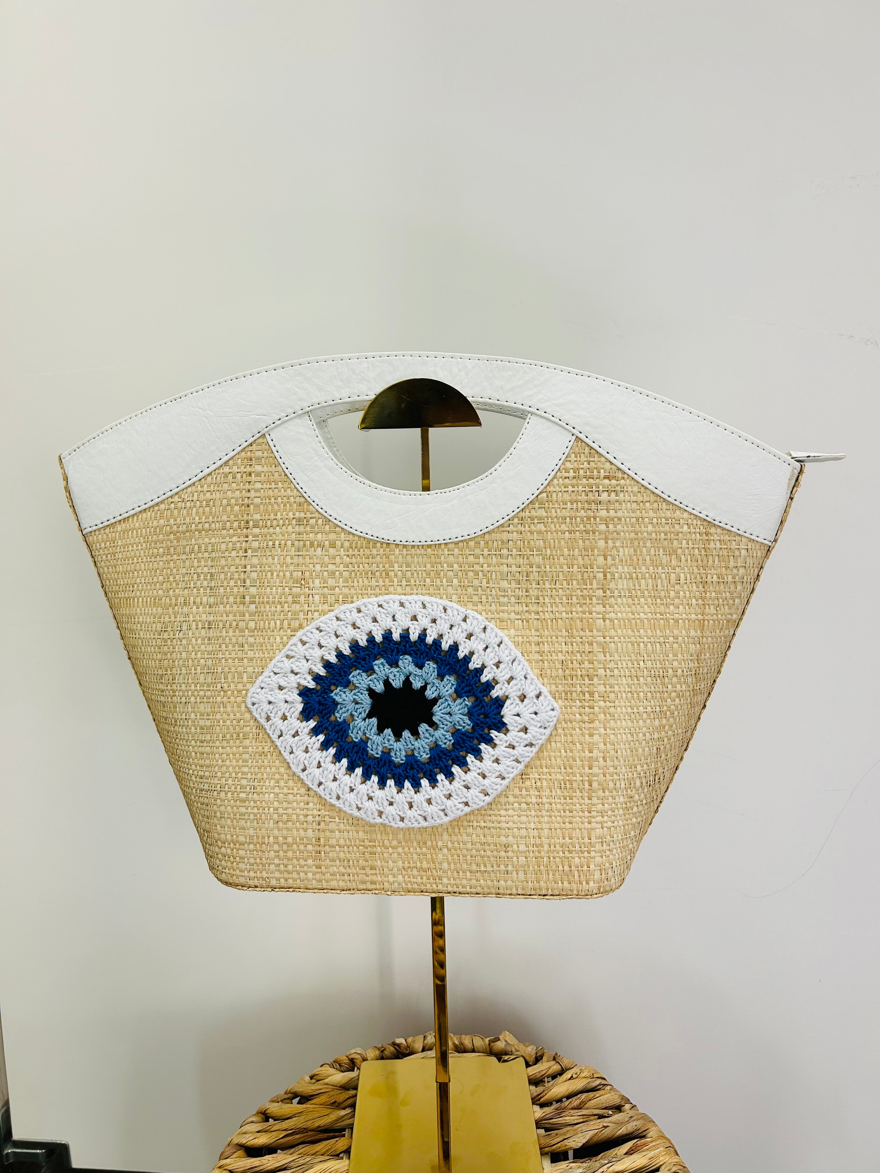 White Round Evil Eye Handmade Bag.