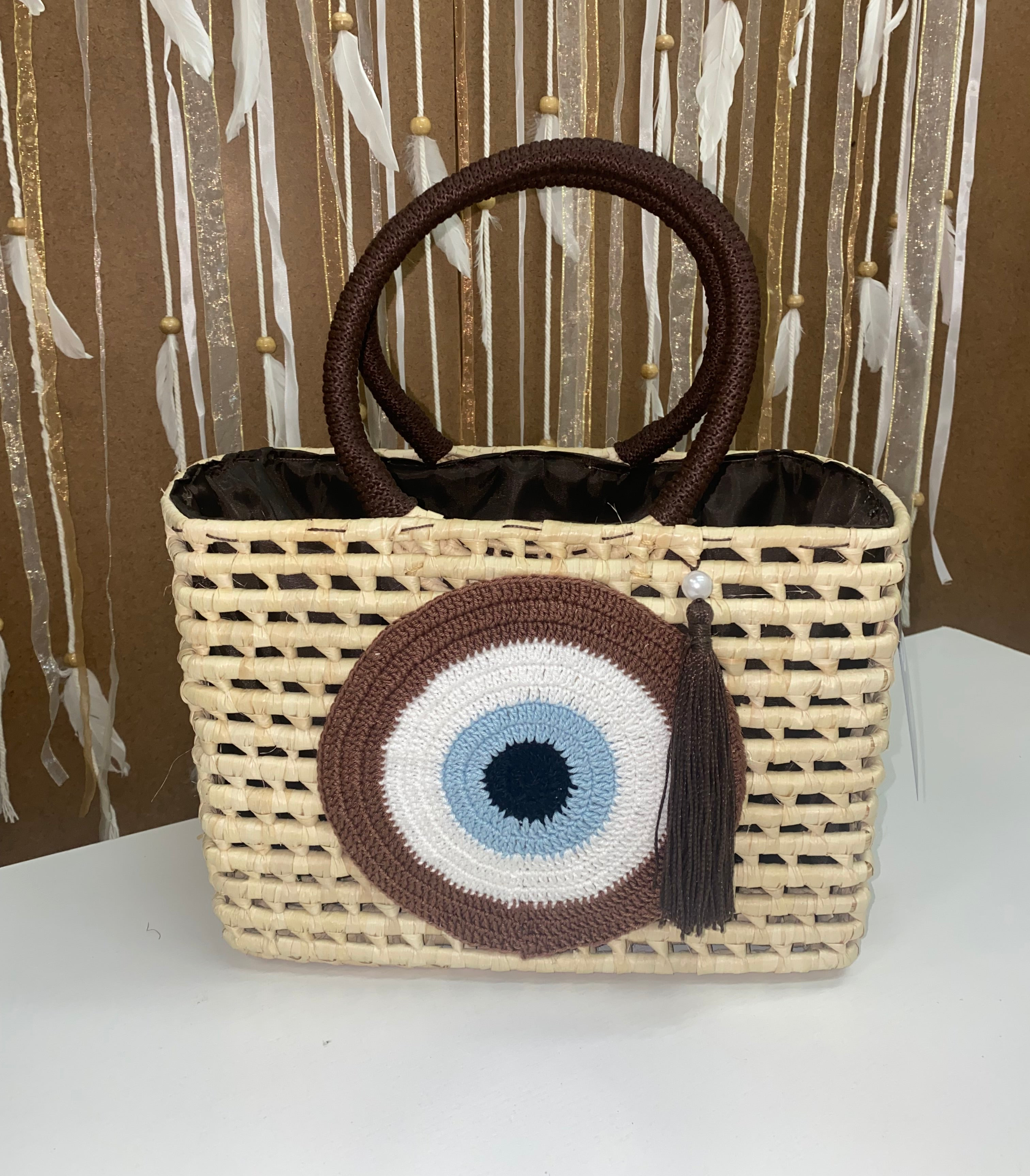 Handmade Bag With Crochet Evil Eye.