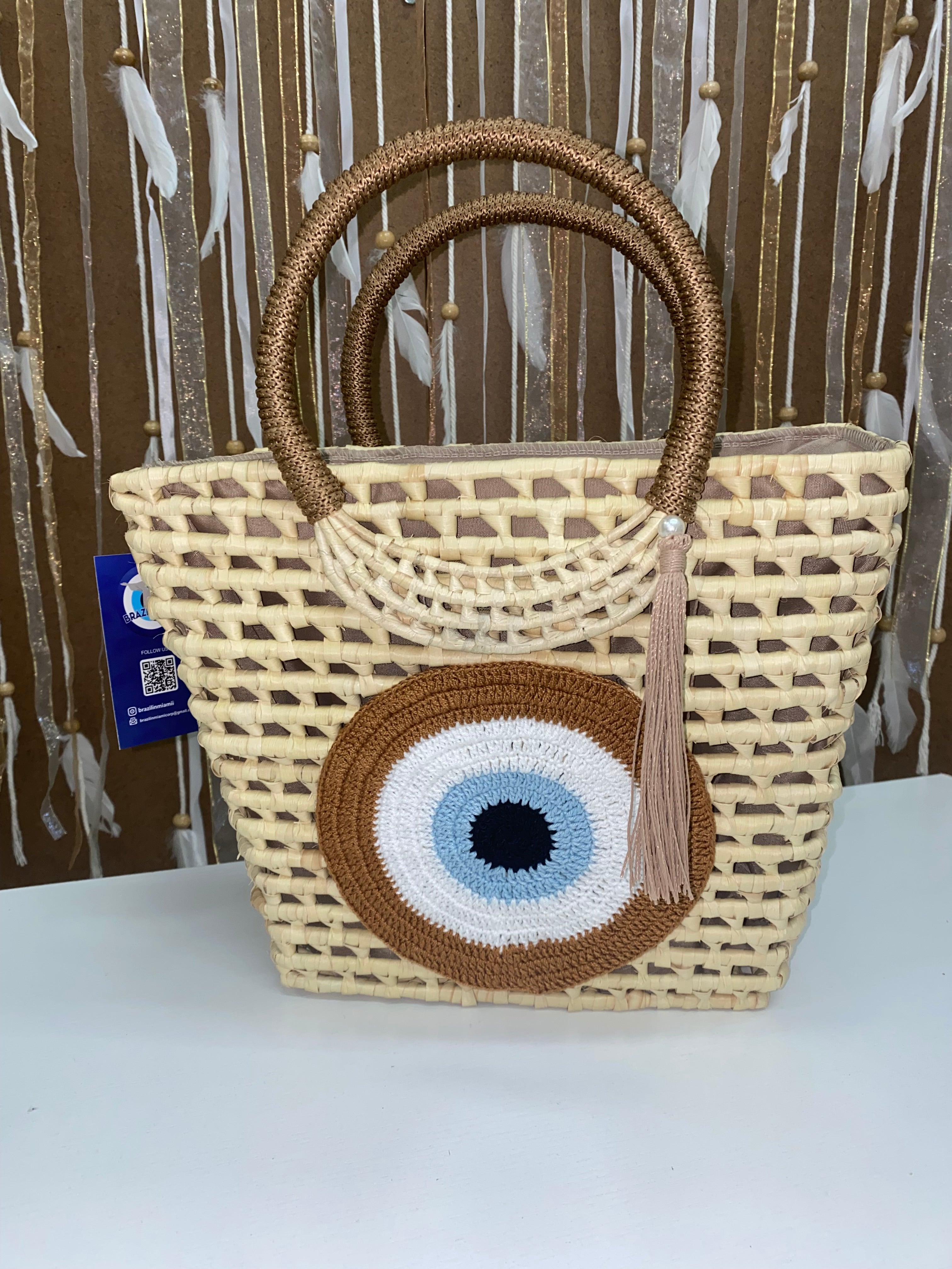 Medium Handmade Bag with Crochet Evil Eye in Blue.