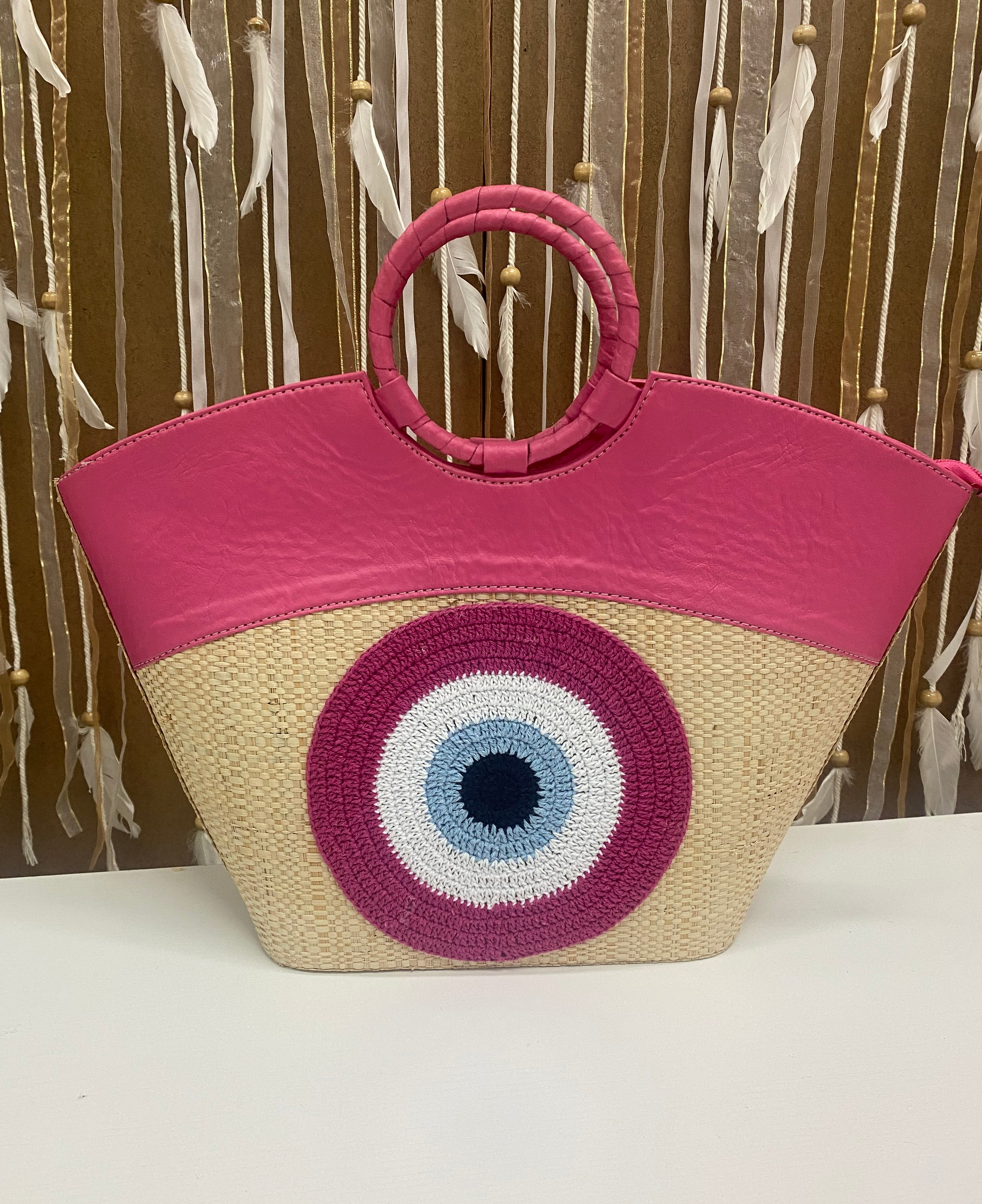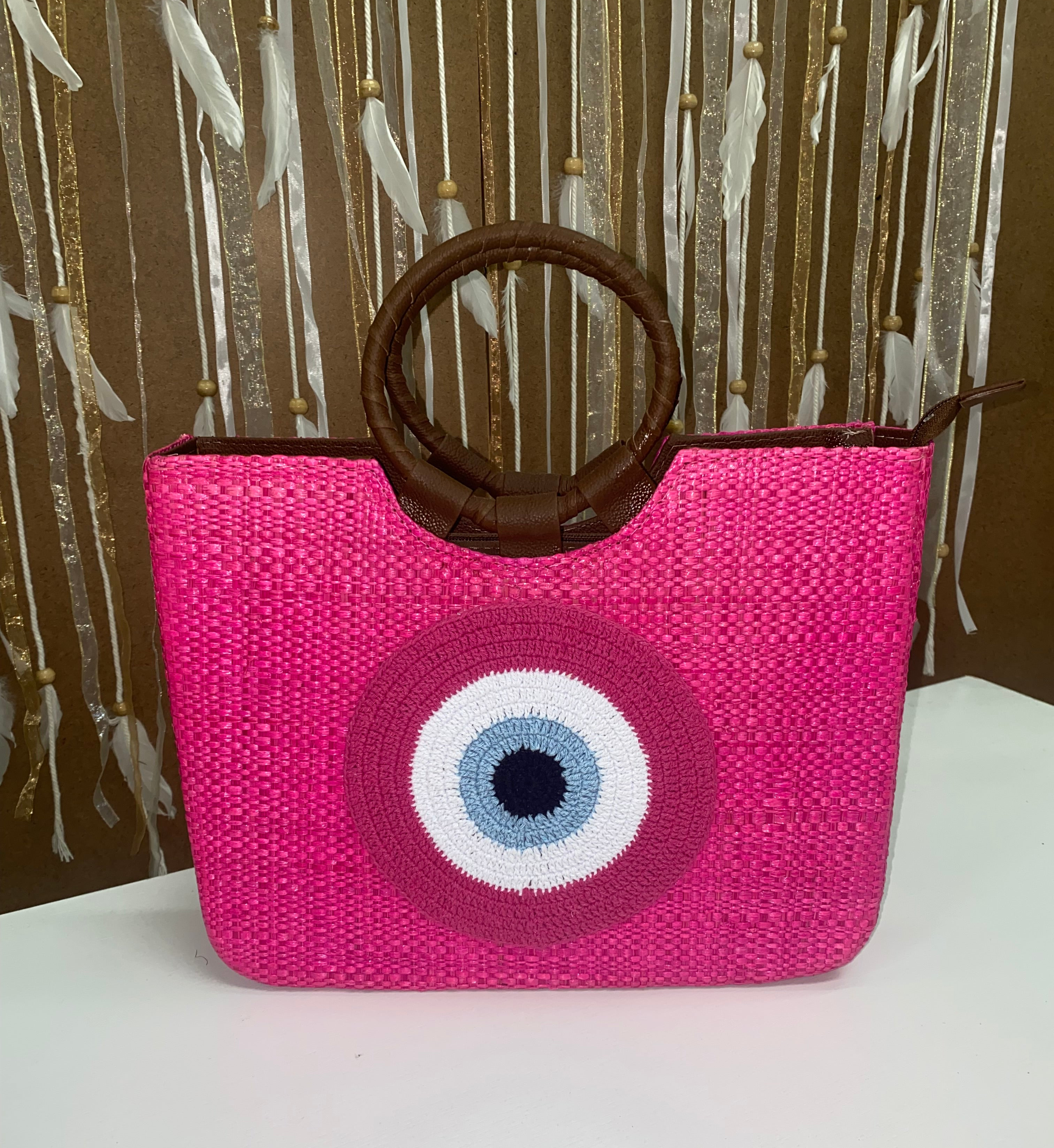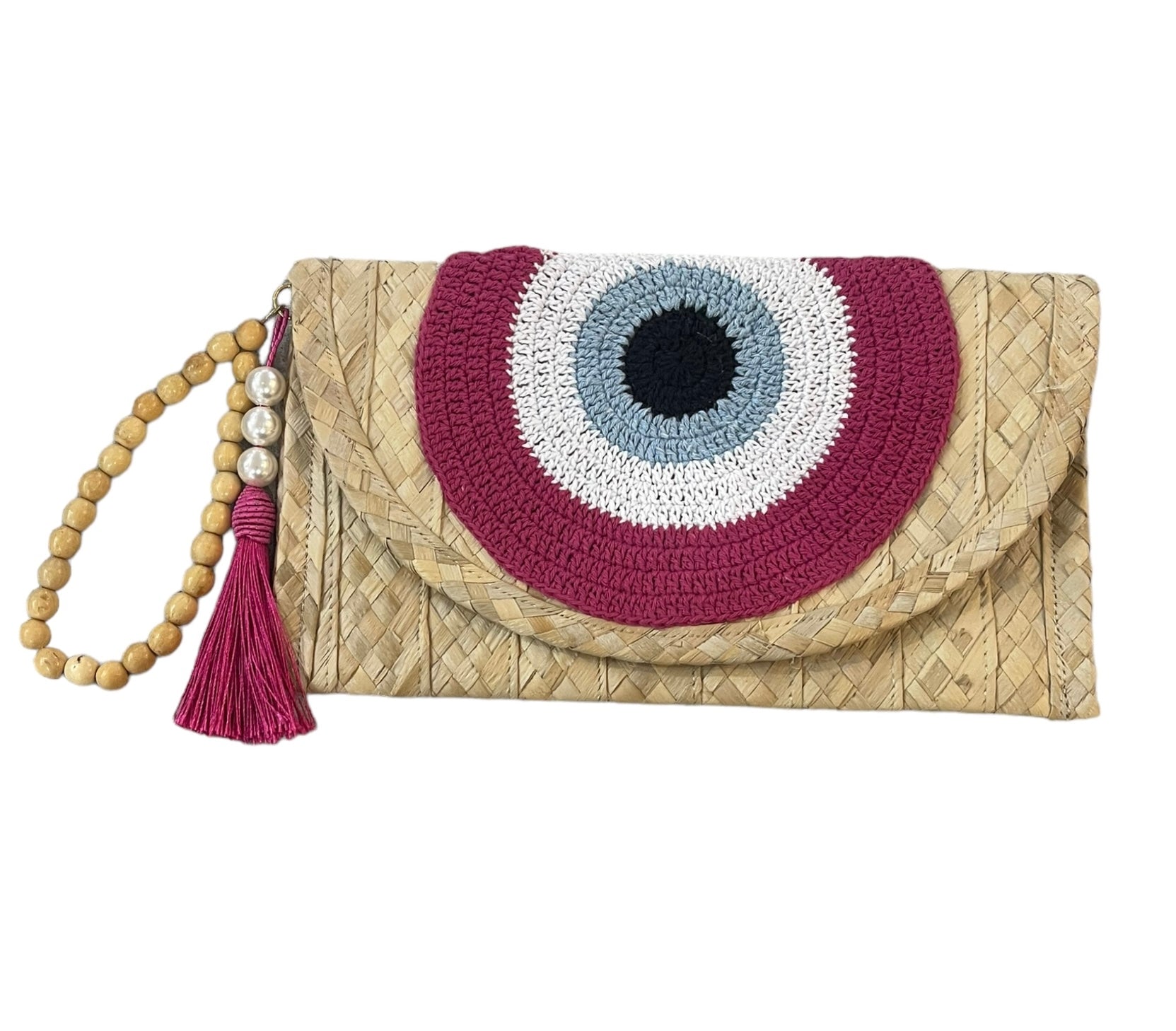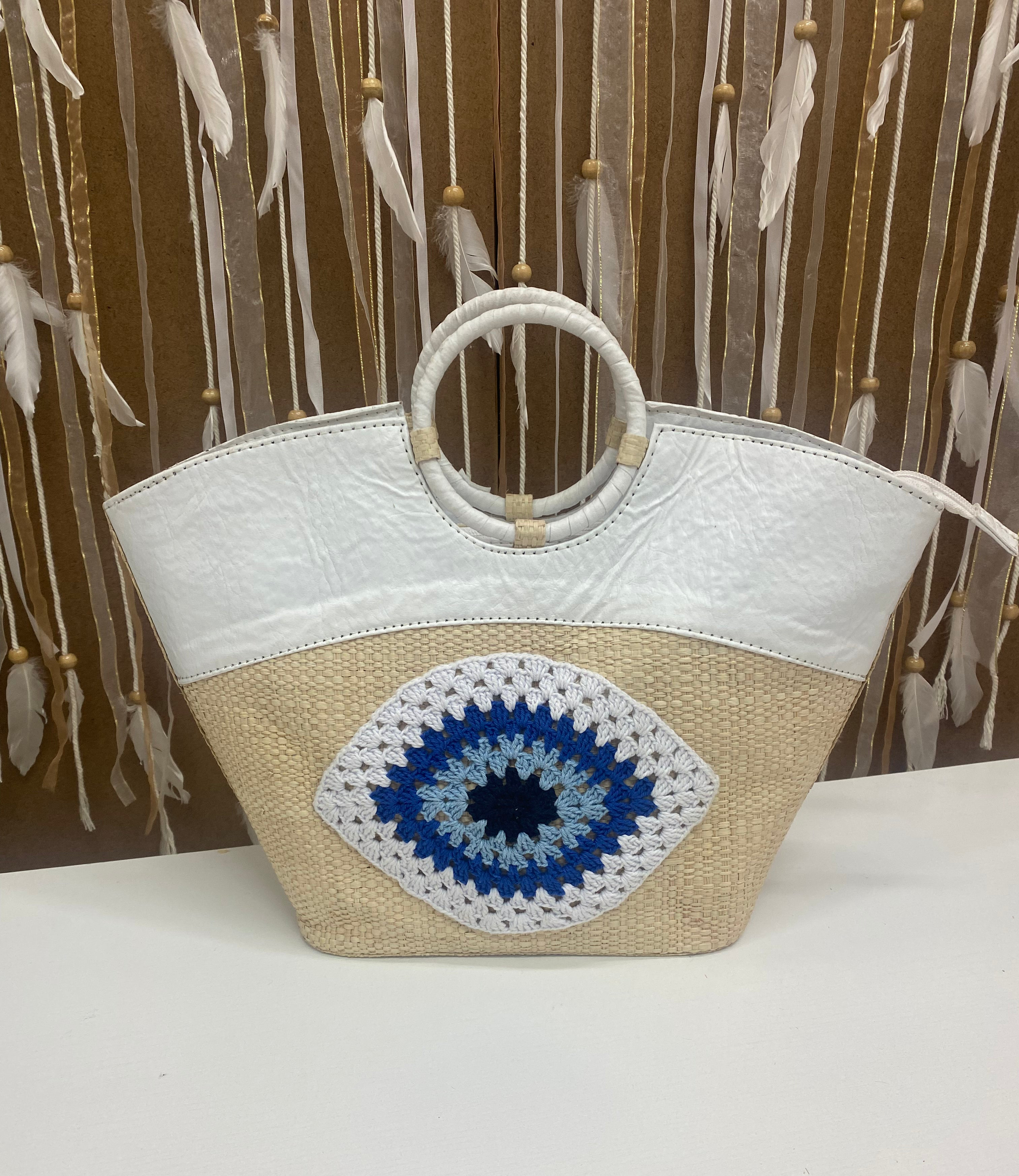 Yellow Crossbody Bag with Crochet Evil Eye.