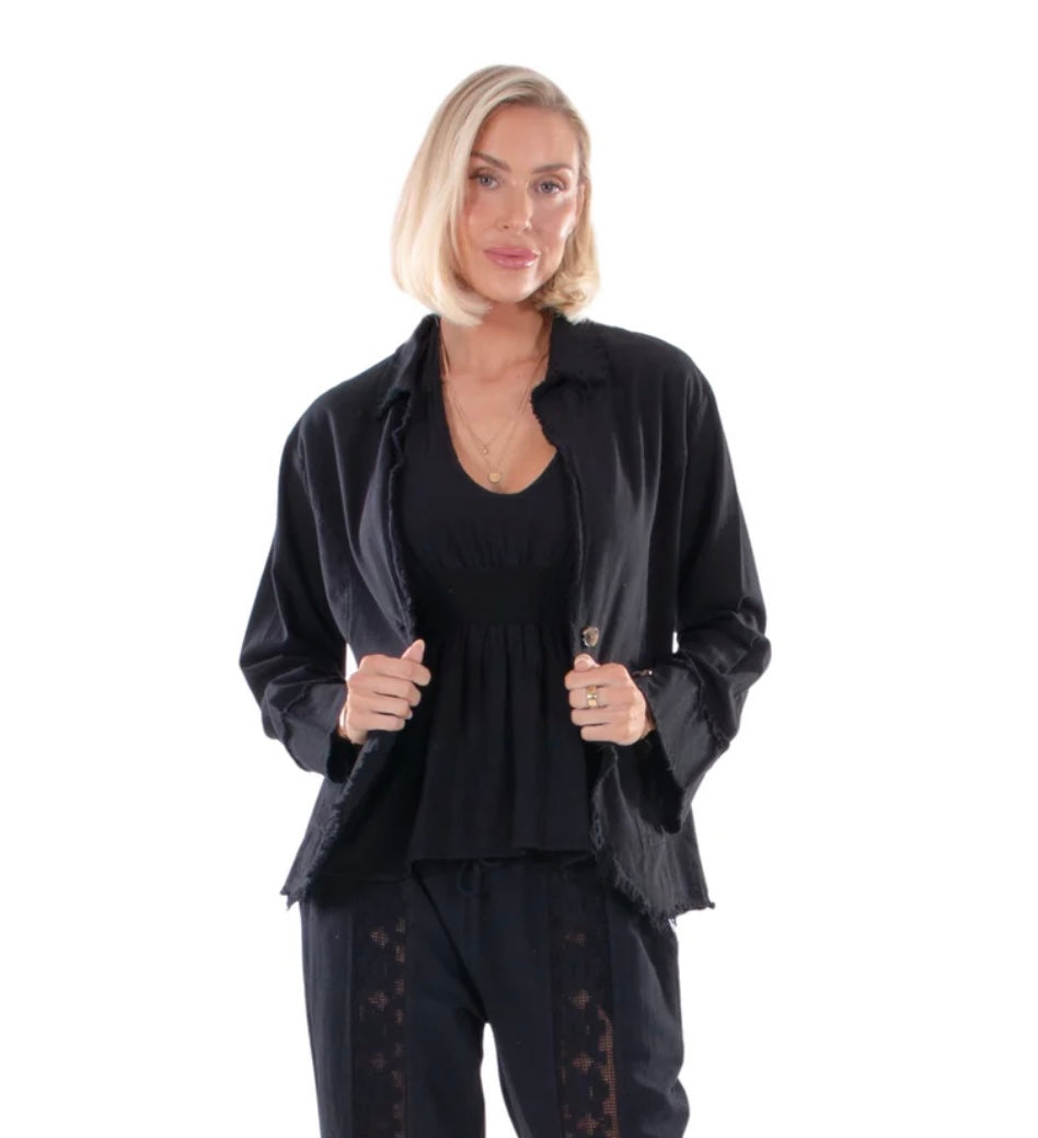 NW1651 - Black Long Cotton Jacket.