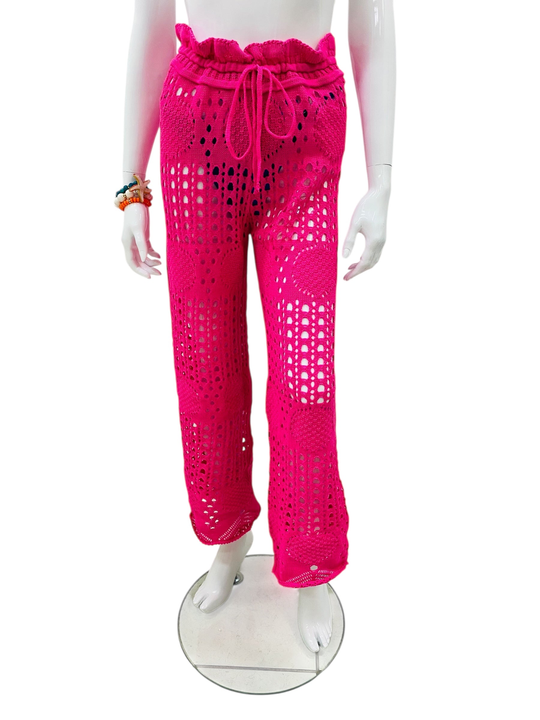 Yuly Pink Crochet Cover Up Pant.