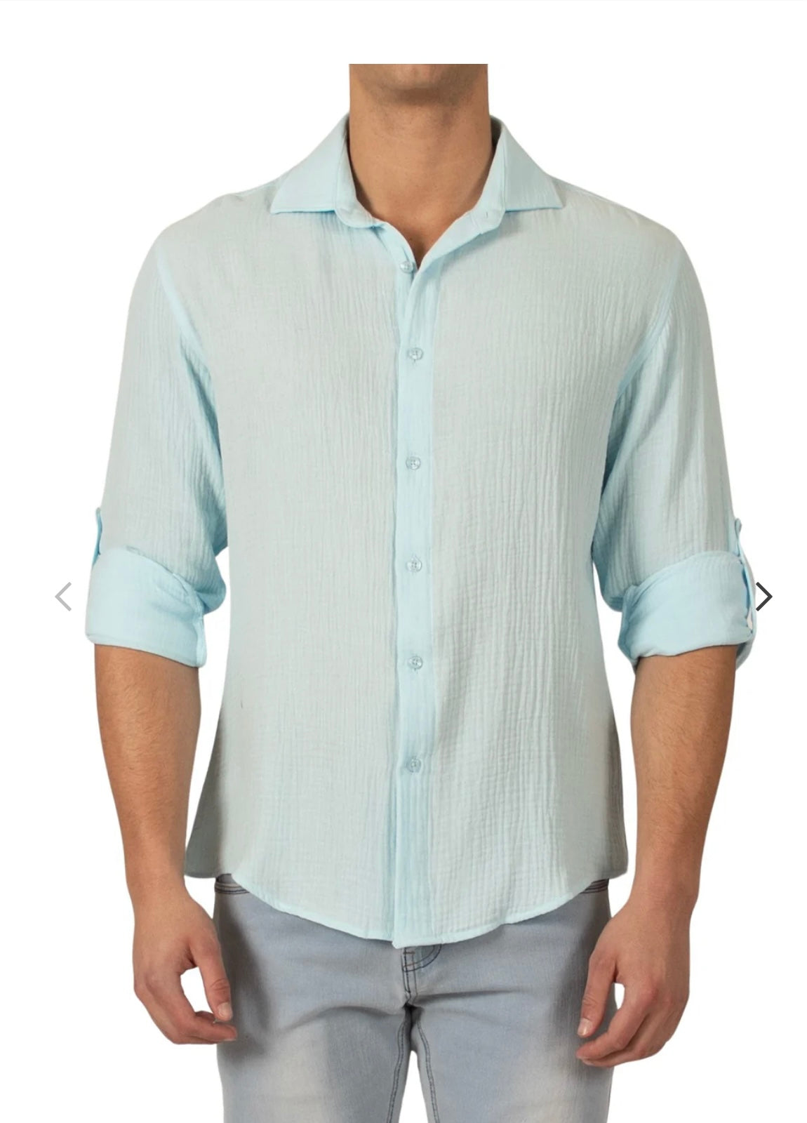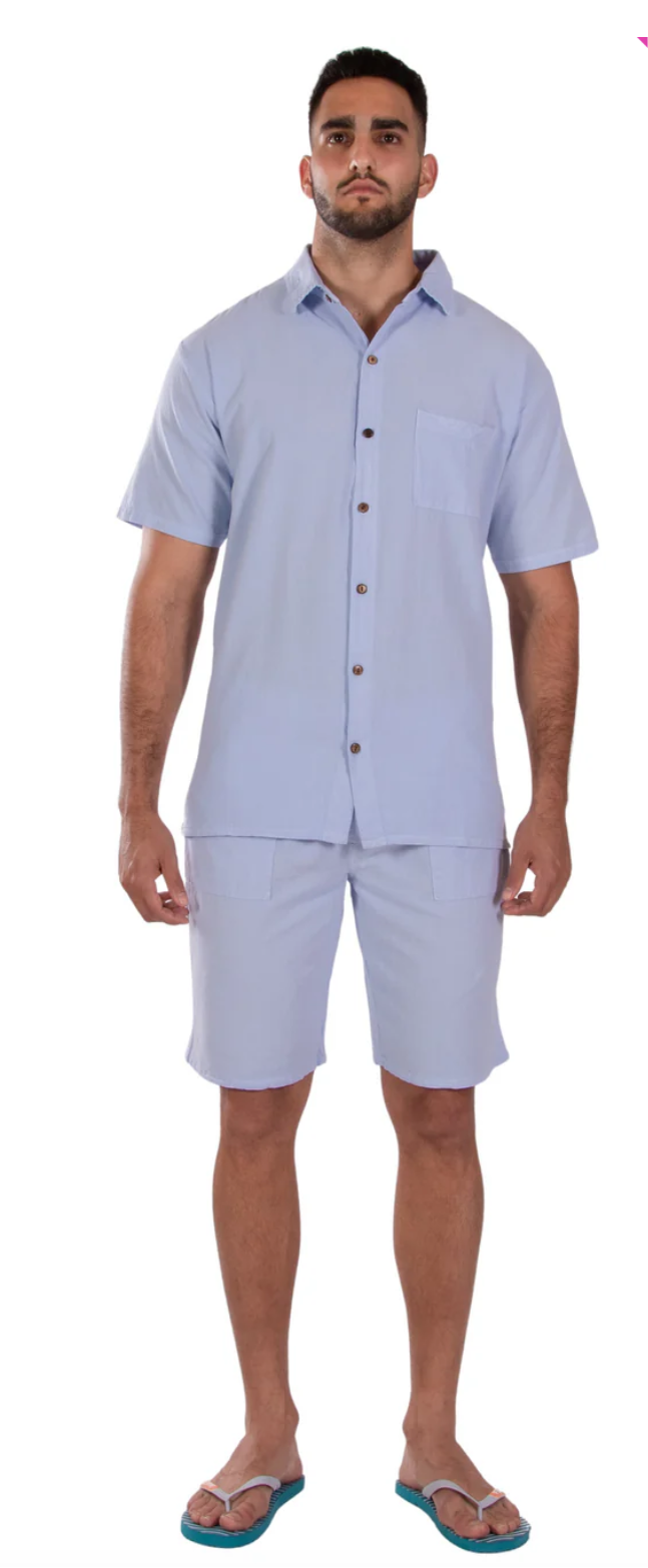 GZ1007- Sky Blue Cotton Button Down Pockets Shirt.