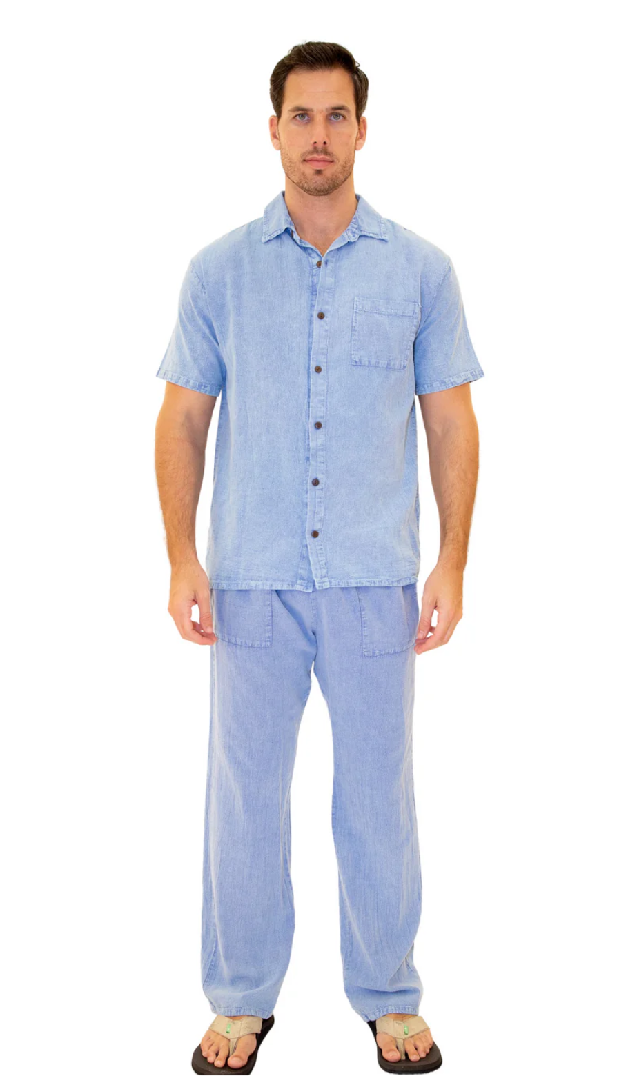 GZ1010 - Blue Cotton Drawstring Waist Pants.