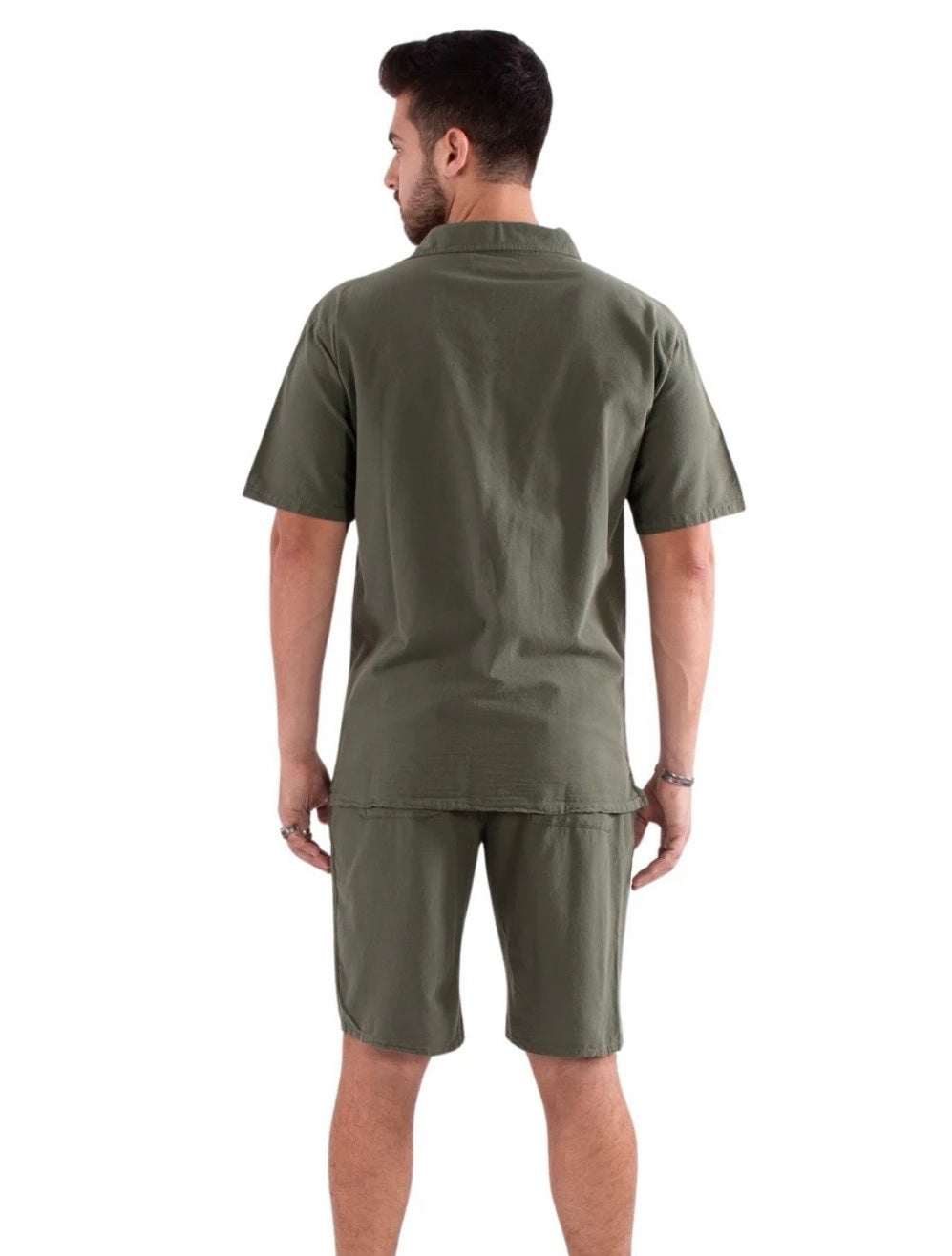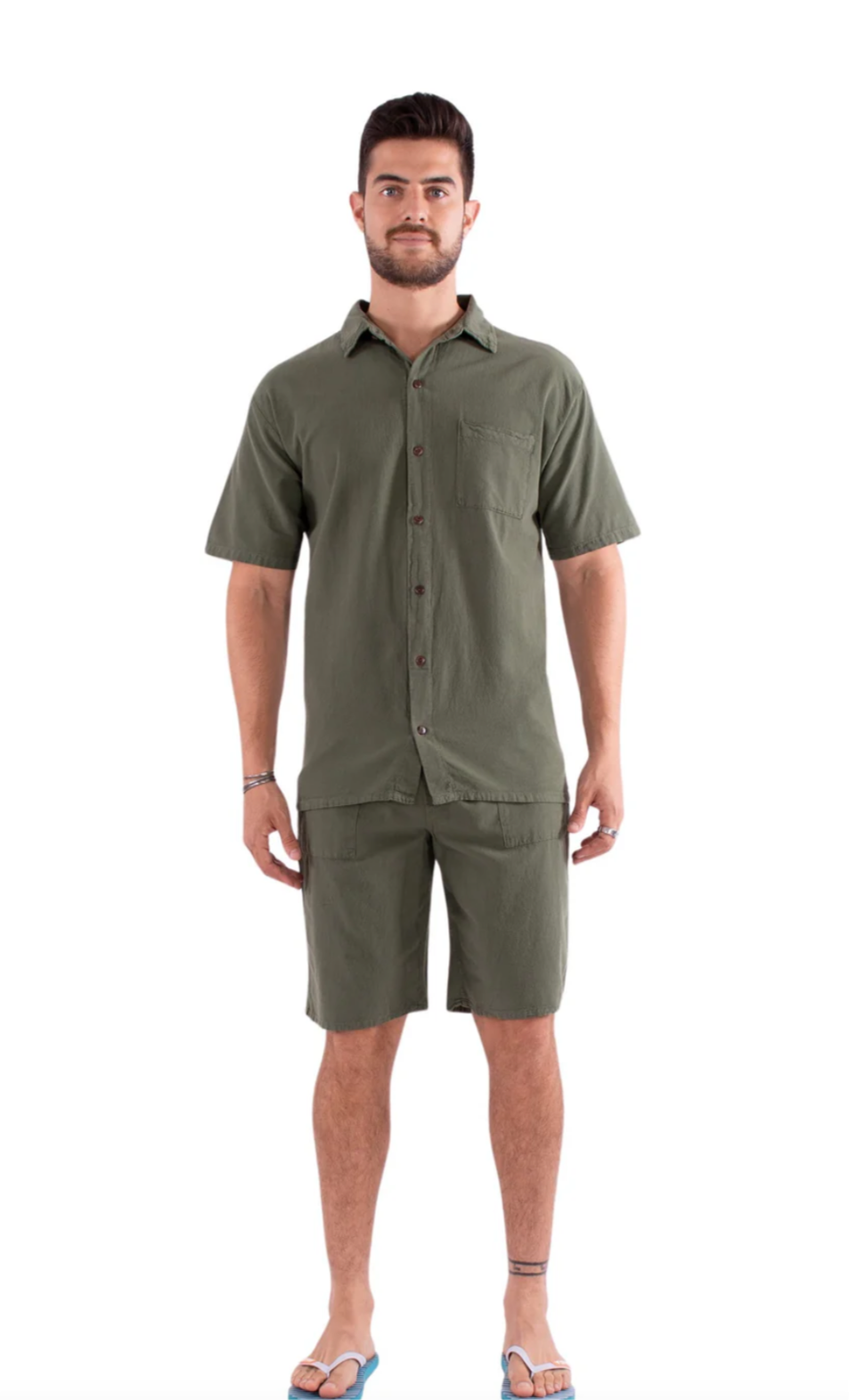 GZ1007- Military Green Cotton Button Down Pockets Shirt.
