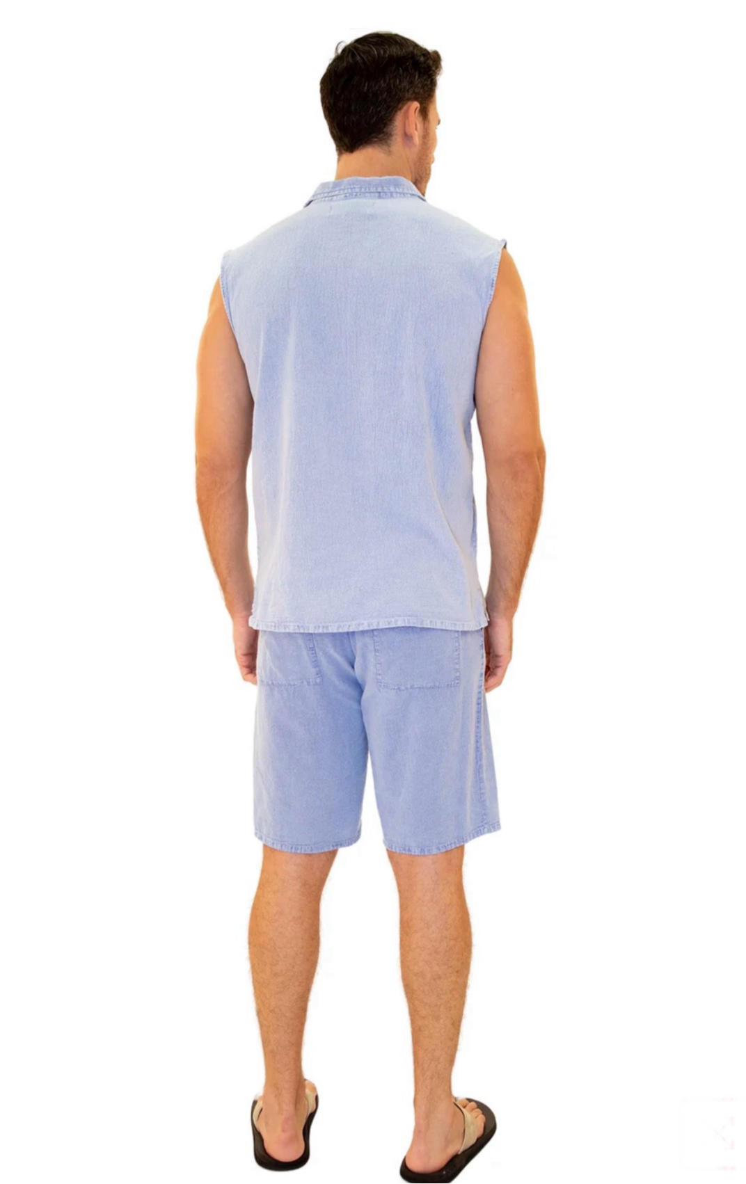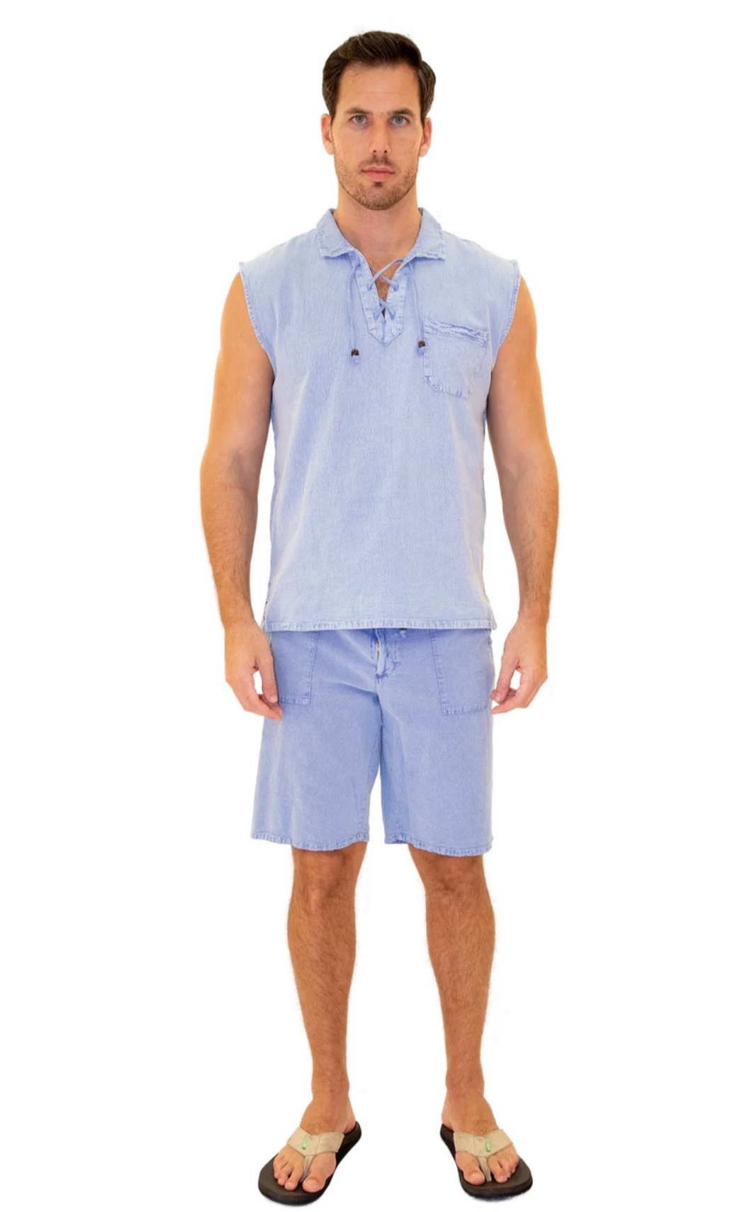 GZ1004 - Blue Cotton Drawstring Pocket Sleeveless Shirt.