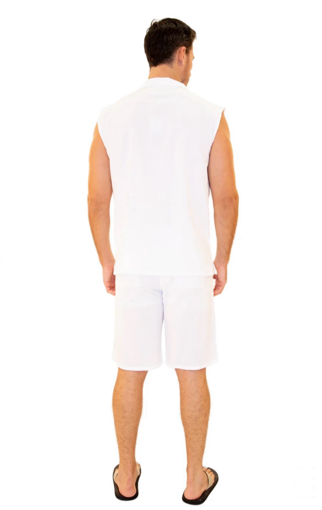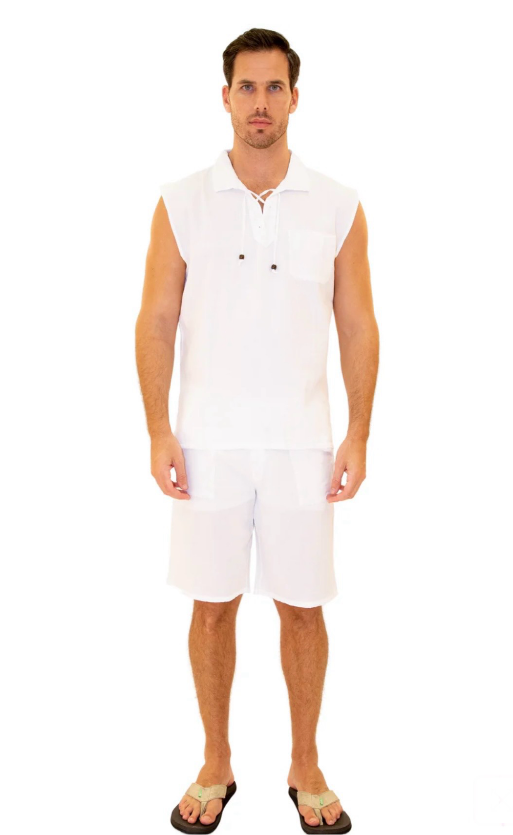 GZ1004 - White Cotton Drawstring Pocket Sleeveless Shirt.