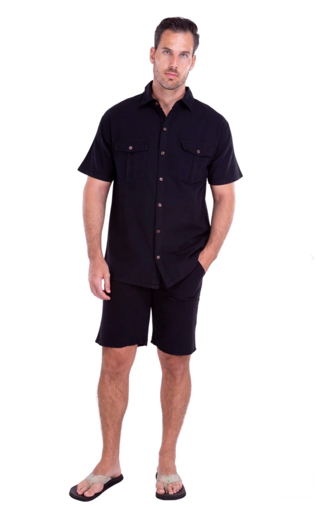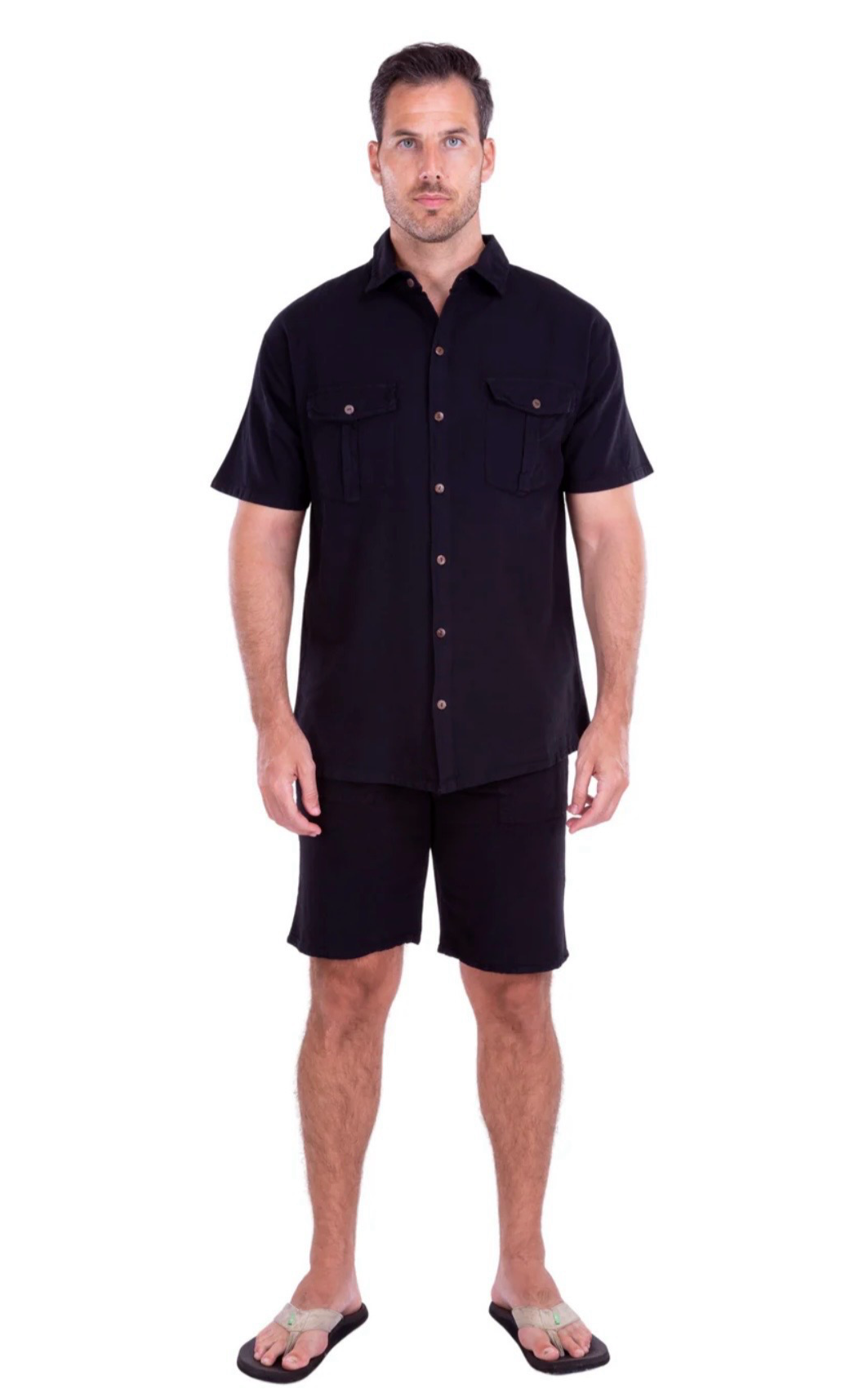 GZ1009 - Black Cotton Button Down Pockets Shirt.