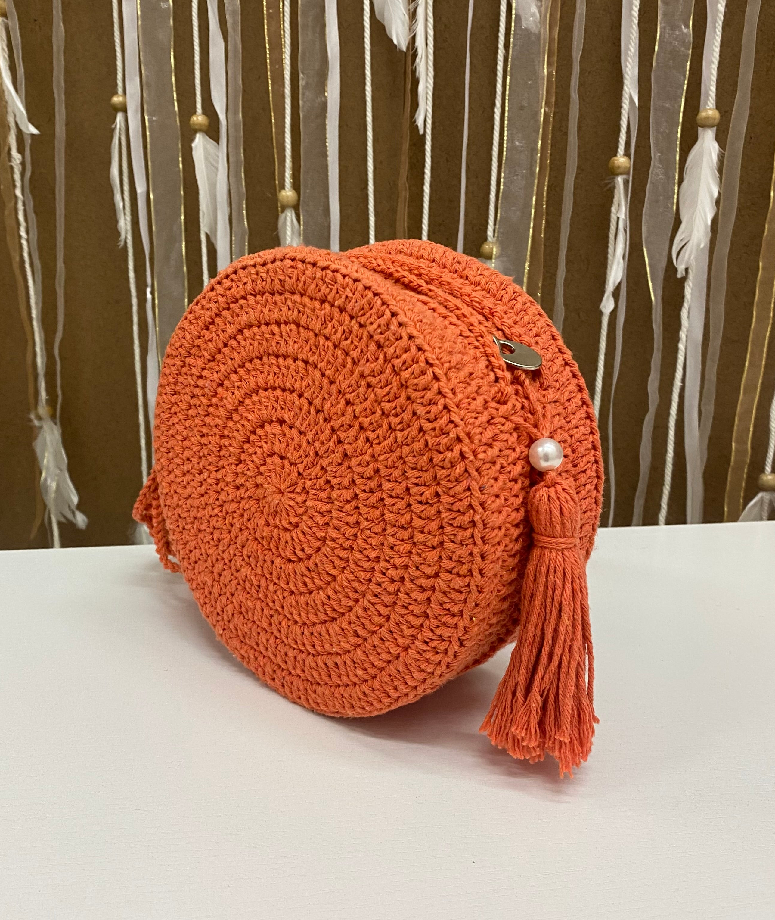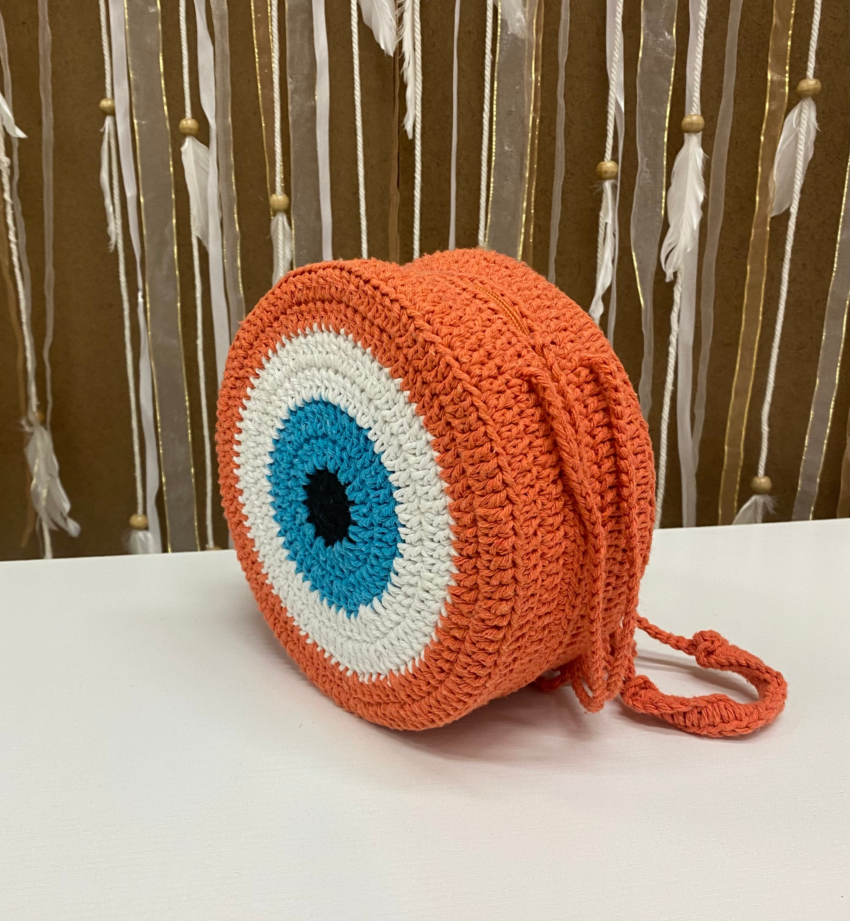 Crossbody Crochet Orange Small Evil Eye Bag.