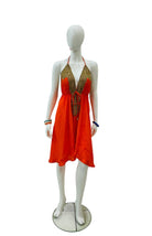 Designer cut hi lo dress with mid string for a perfect fit. Made in beautiful viscose crepe fabric adding to it the required texture and flow. The neck is embellished with hand done bead work and crystals. Available in other rich solid colors. Great wear for resort, holiday and special occasions.
