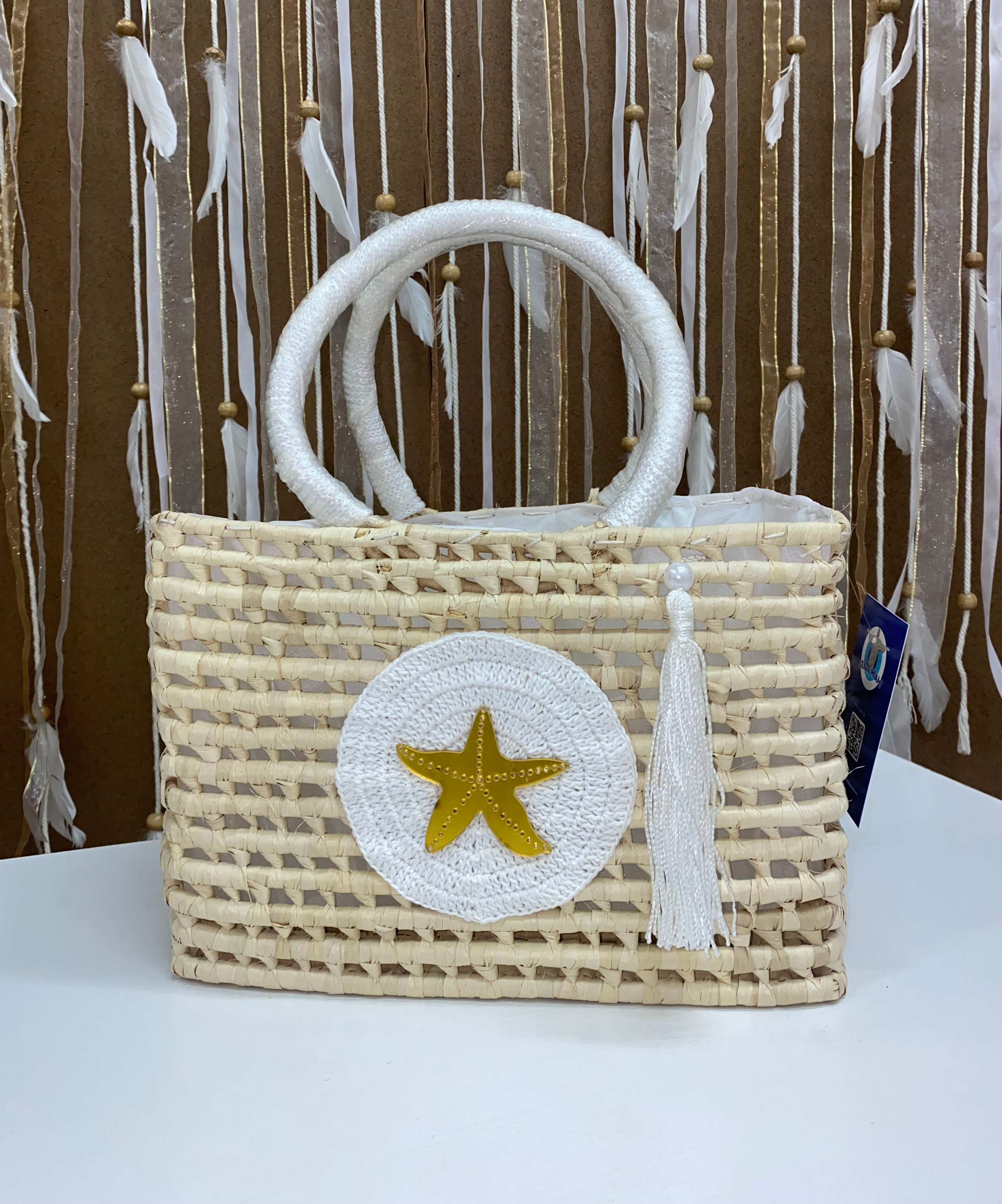 White Square Star Handmade Bag.