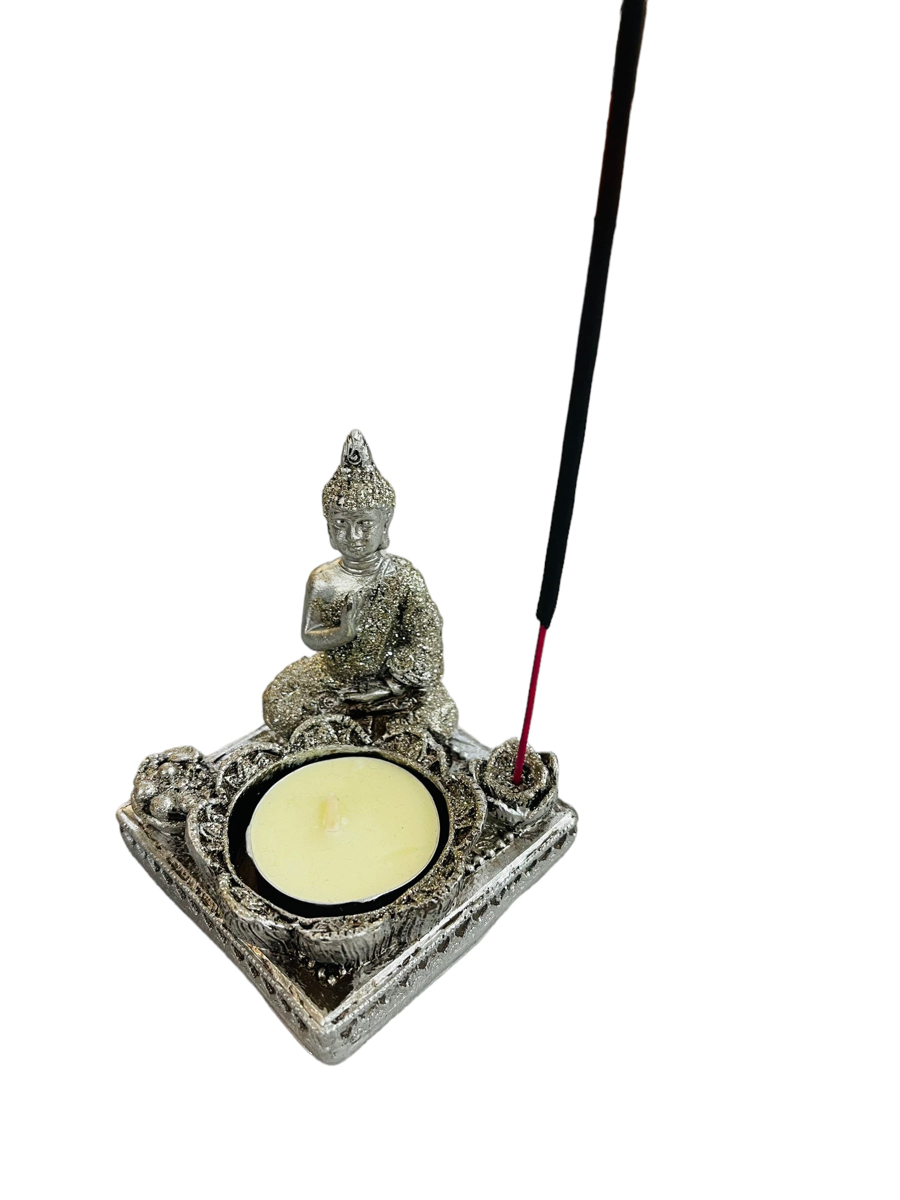 Squared Buddha Incense Holder And Candle.