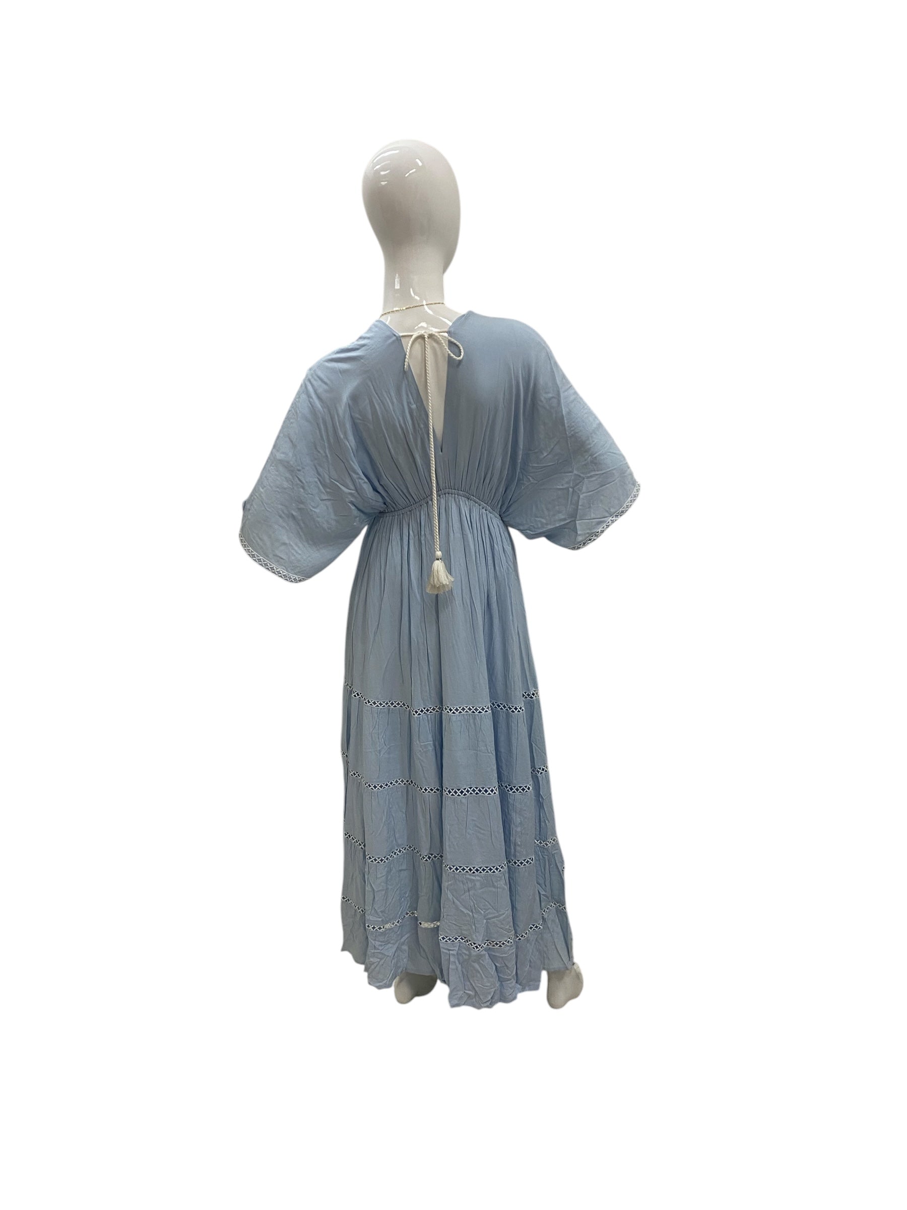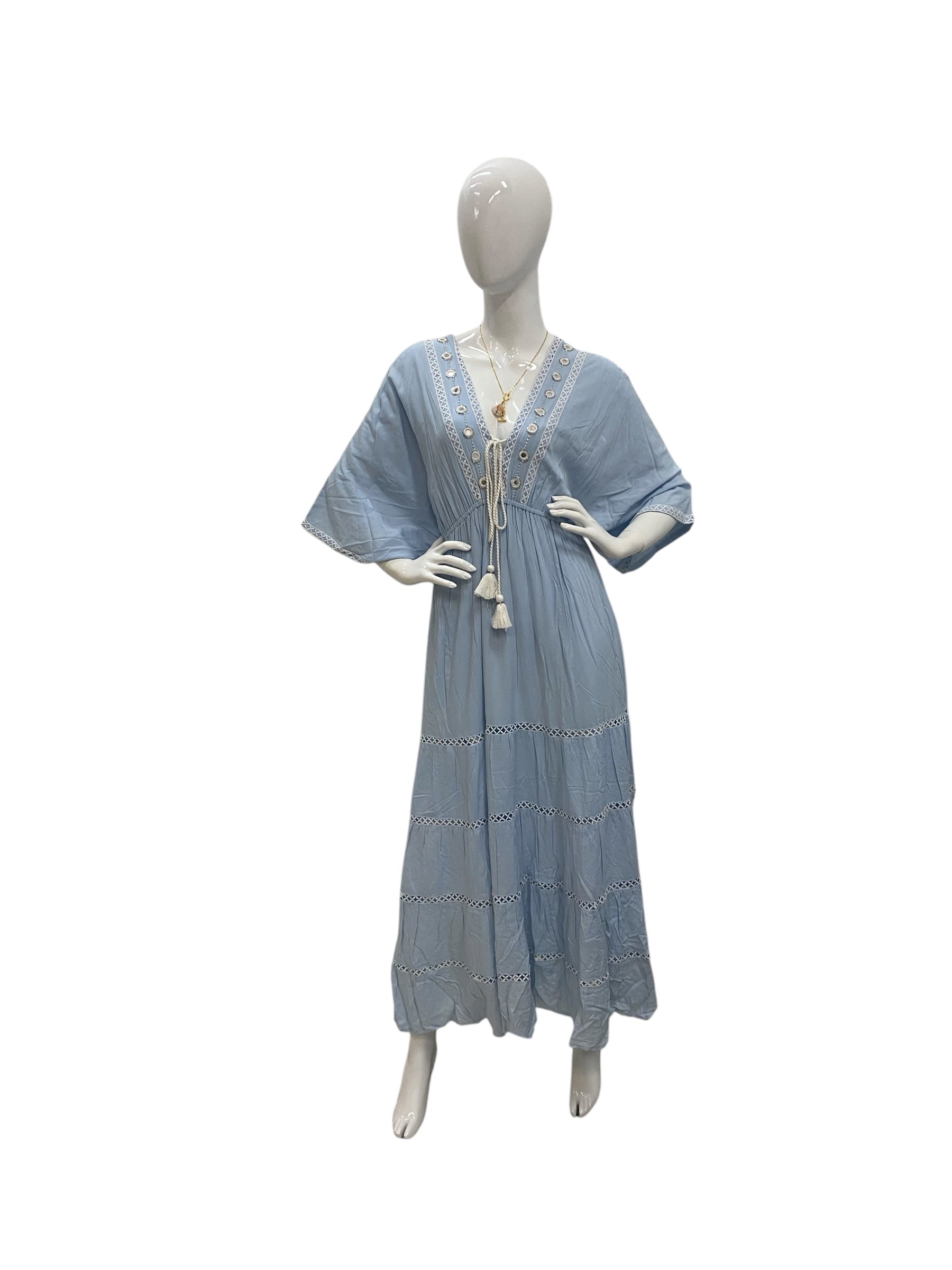 The Azure Serenity Long Dress brings a fresh, elegant feel with its soft blue tone and flowy design. Lightweight and comfortable, it's perfect for cruises, beach days, and summer outings.
