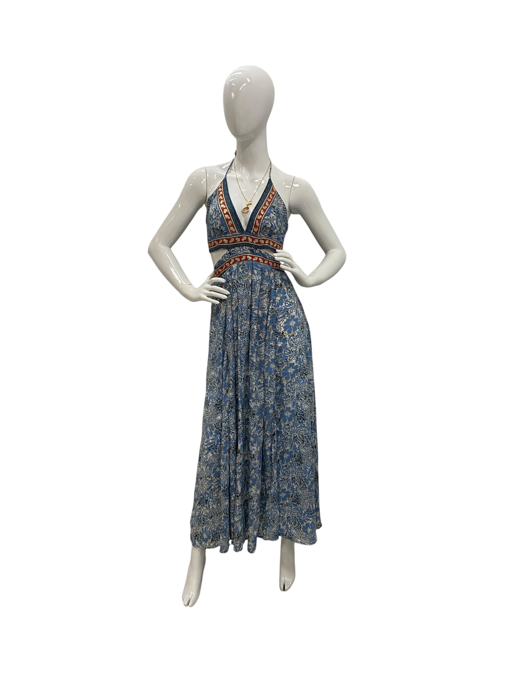 Aquafina Blue Pattern Long Butterfly Cut Dress
