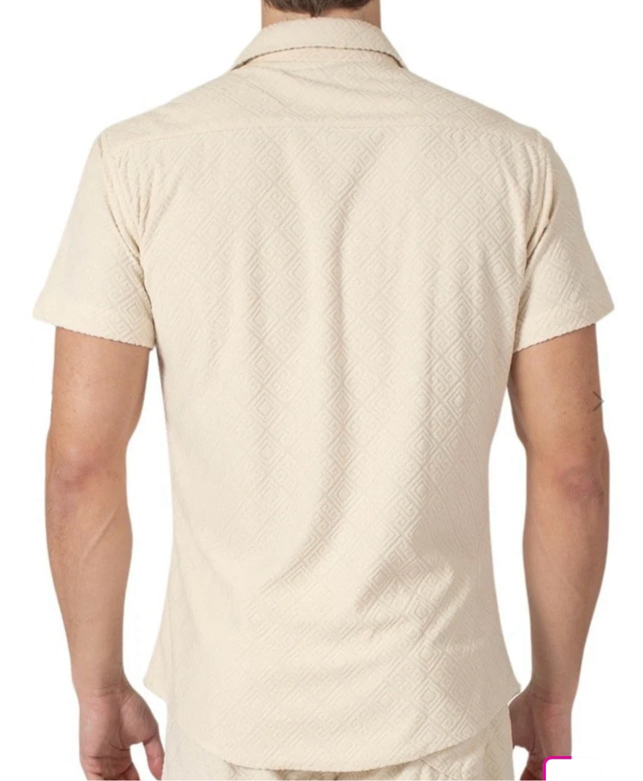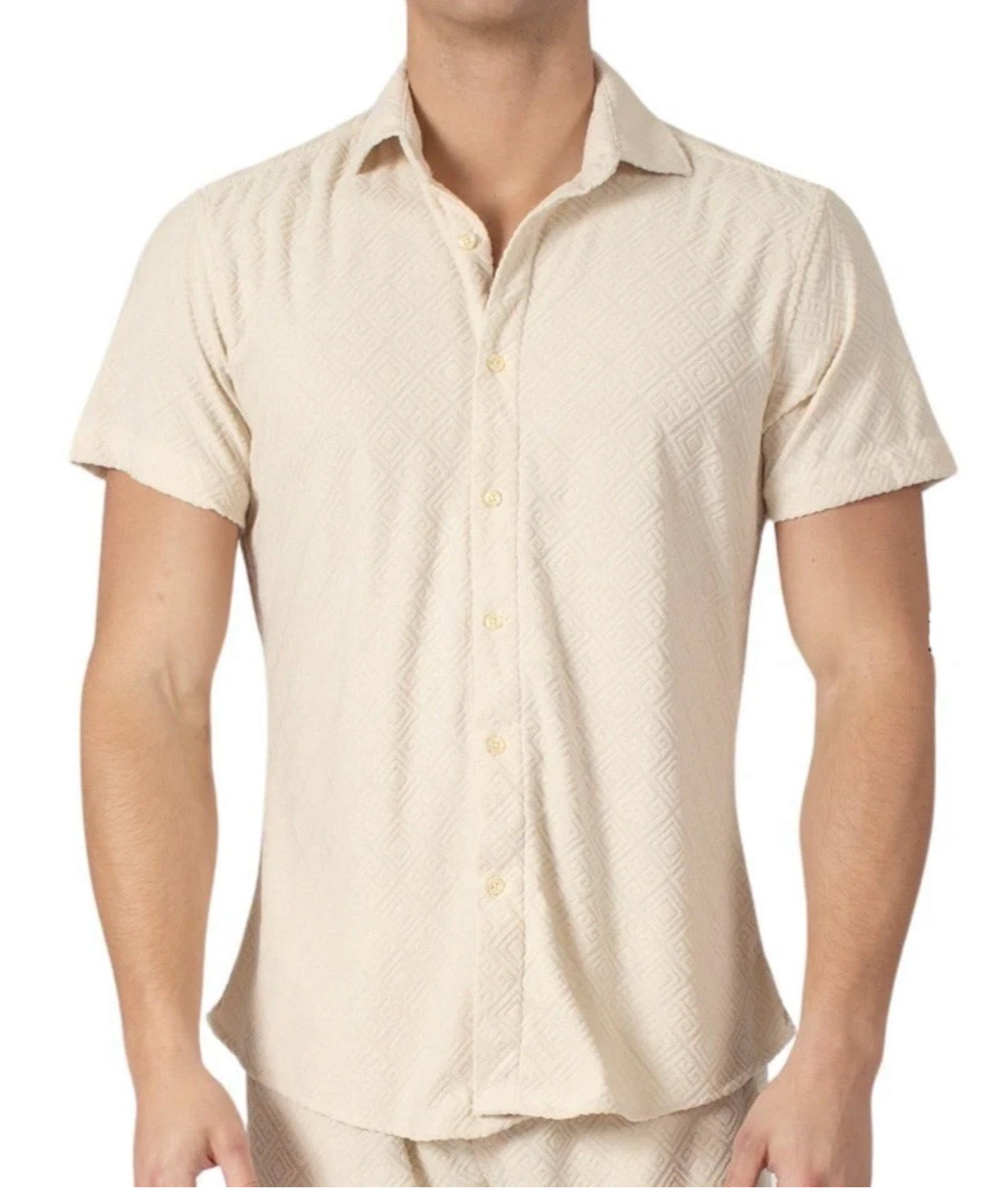 232113- Beige Greek Pattern Short Sleeve Shirt.