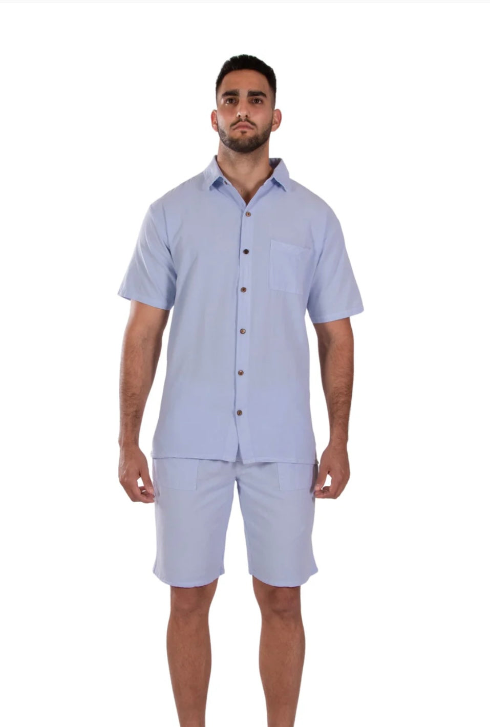 GZ1007- Sky Blue Cotton Button Down Pockets Shirt.