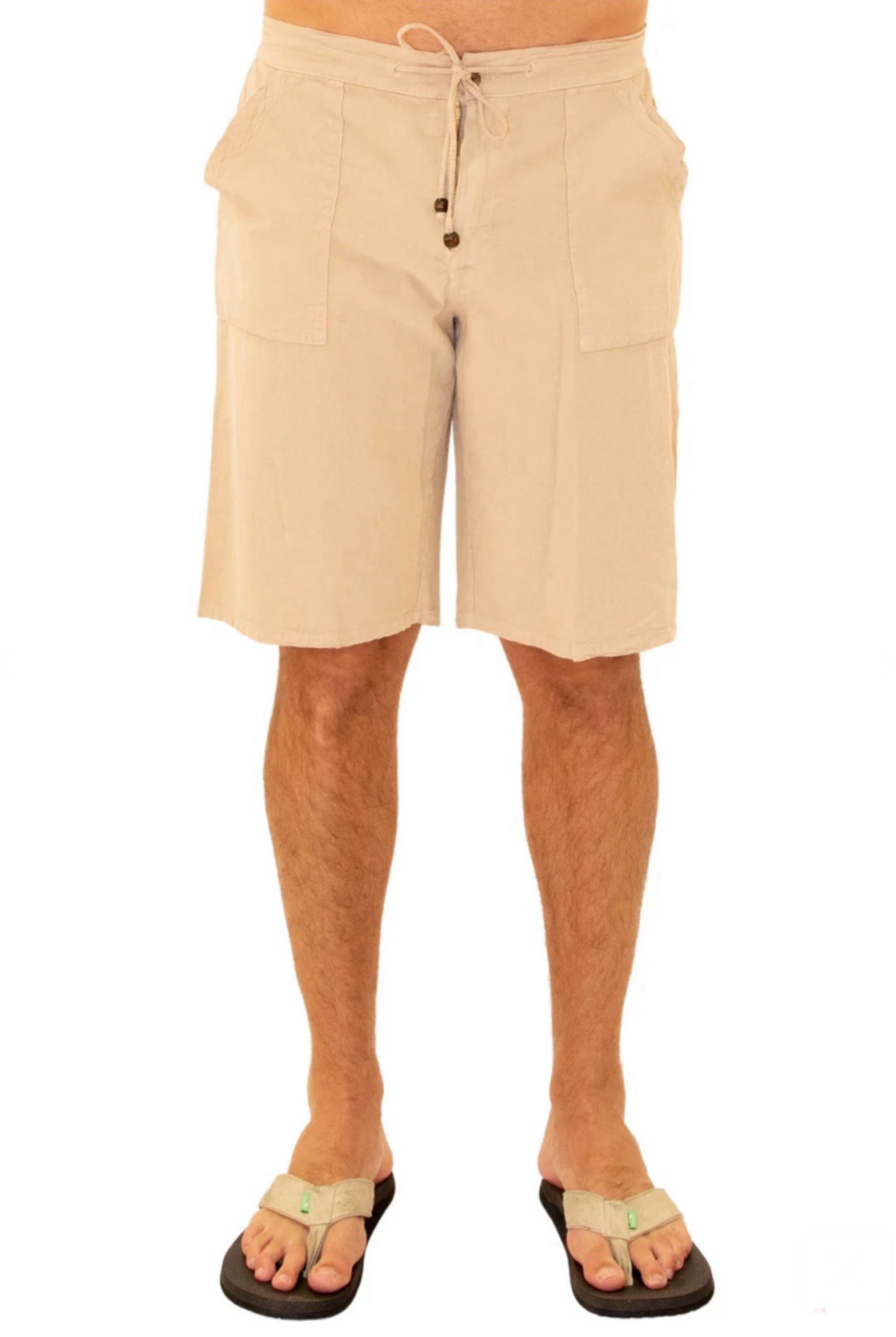GZ3102 - Beige Cotton Drawstring Waist Shorts.
