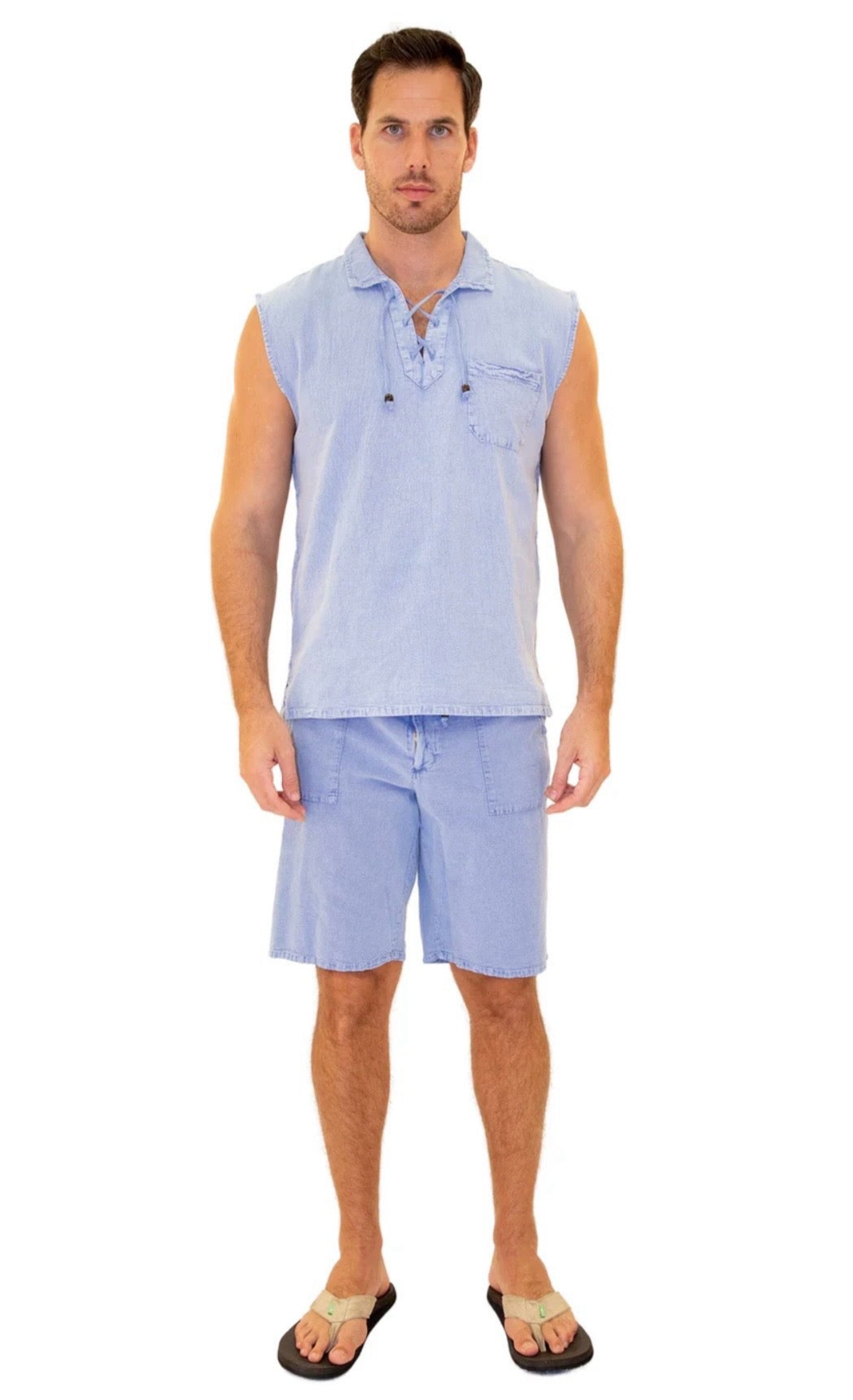 243103 - Turquoise Linen Shorts.