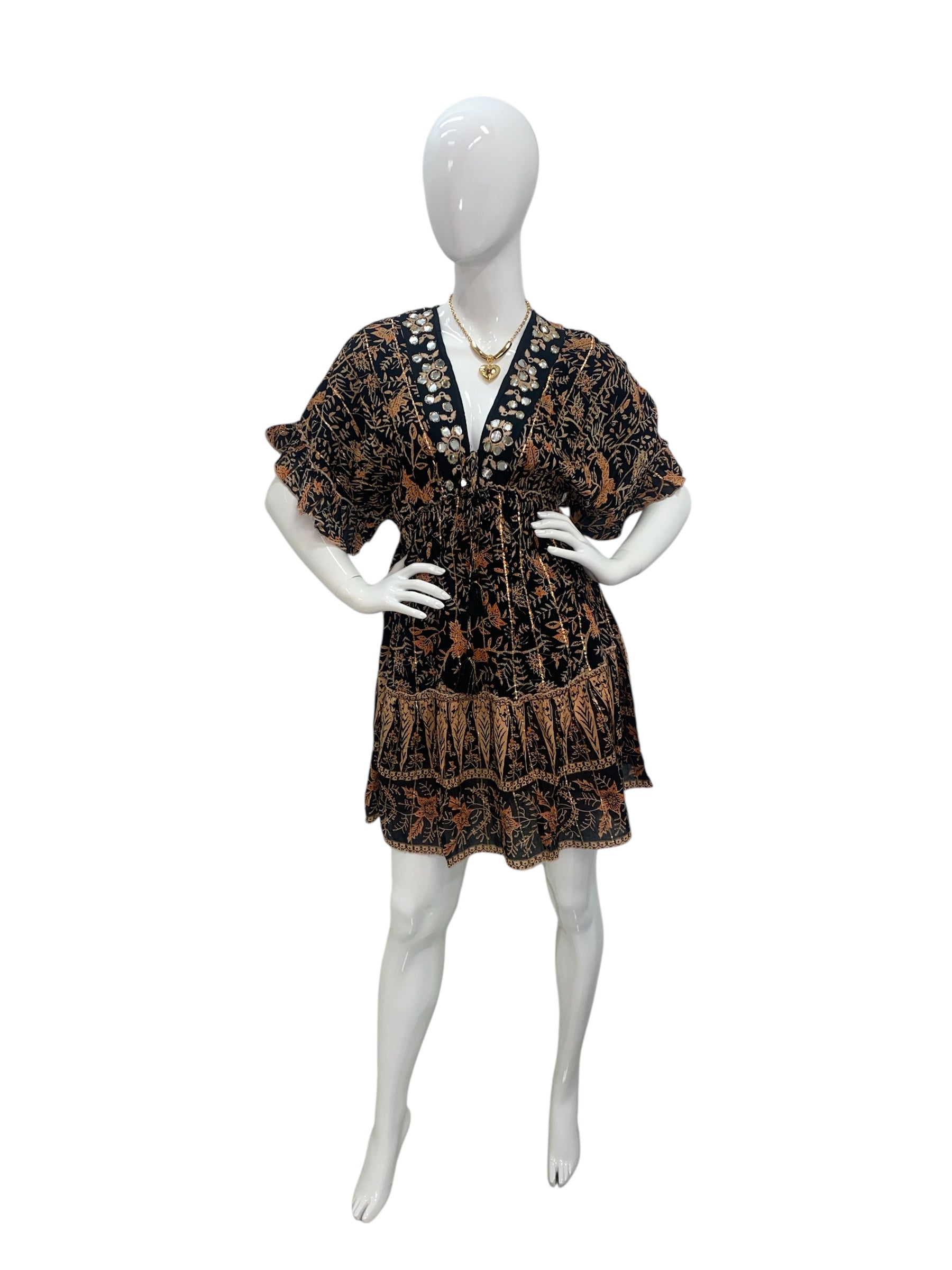 Nela Black and Beige Short Dress.
