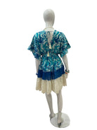 This piece feels like salt-kissed breezes and turquoise tides — a seaside bohemian spirit translated into fabric. The swirling blue-green print mimics the fluid motion of waves, like sunlight dancing across shallow tropical waters. It has that effortless beach-poet energy: soft, free, and touched by the sky and sea.
